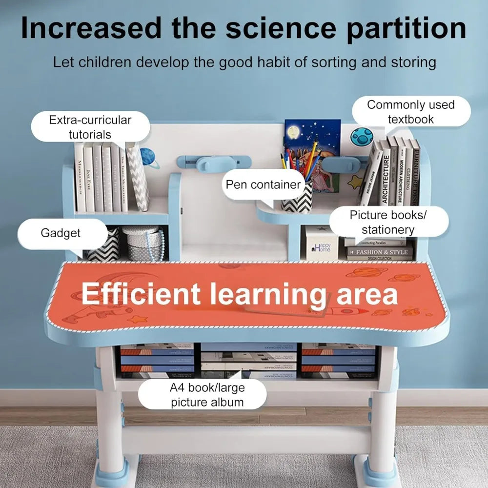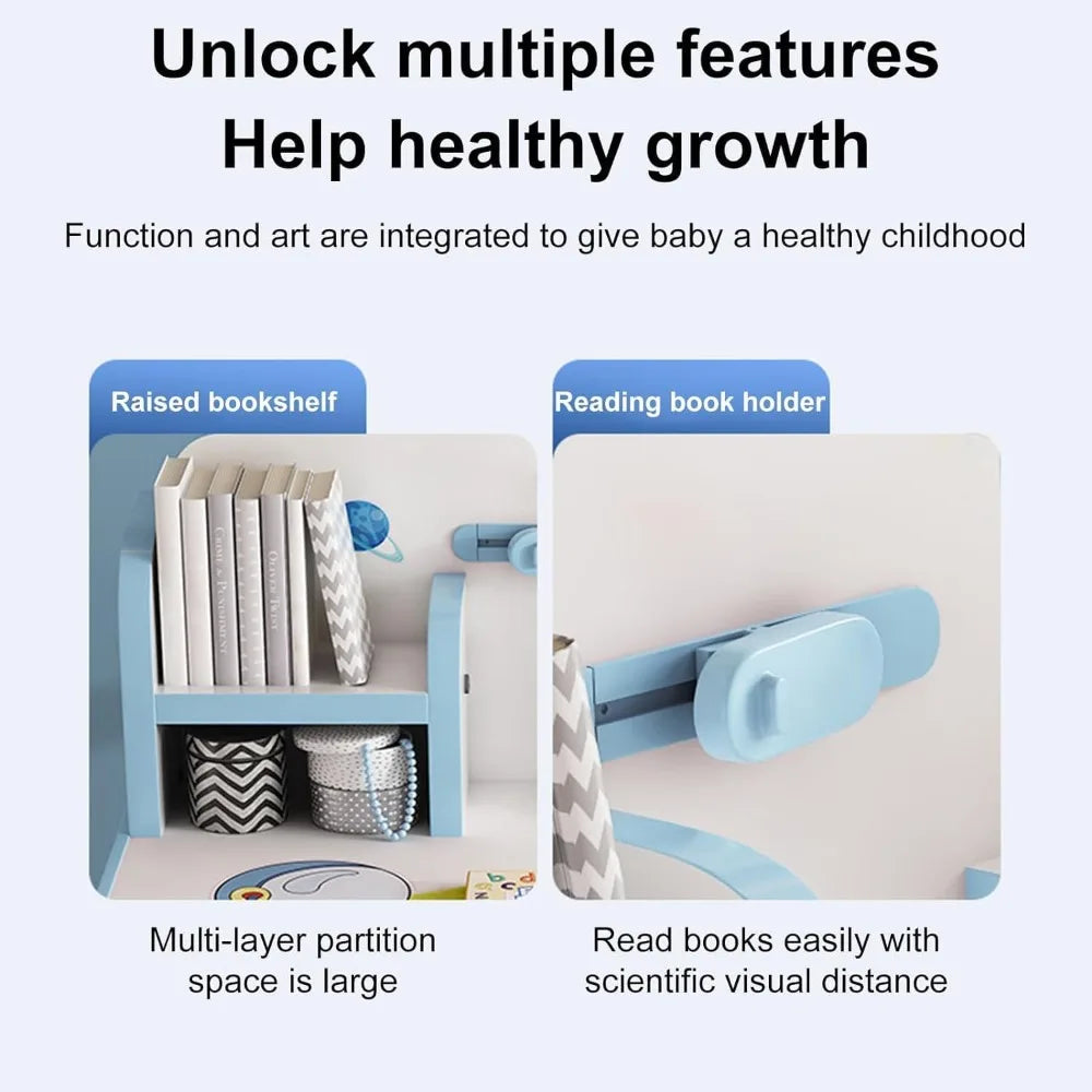 Adjustable Kids Desk and Chair Set – Ergonomic Children’s Study Table with Golden Distance Design, Spacious Desktop, and Storage Drawer – Ideal for Homeschooling and Learning