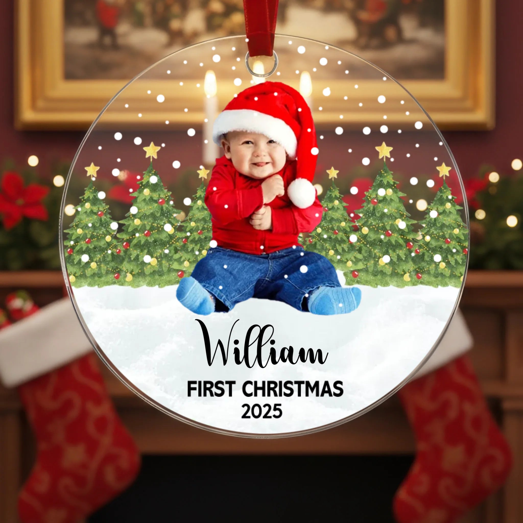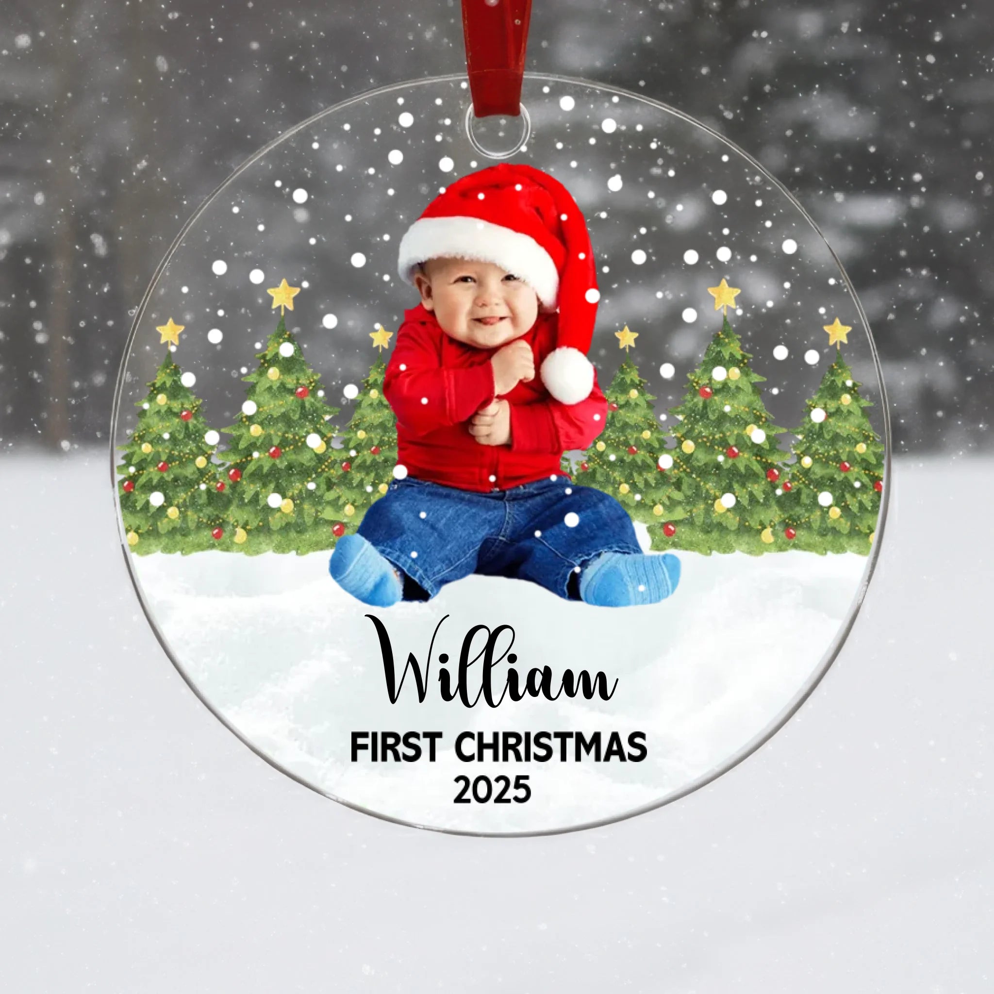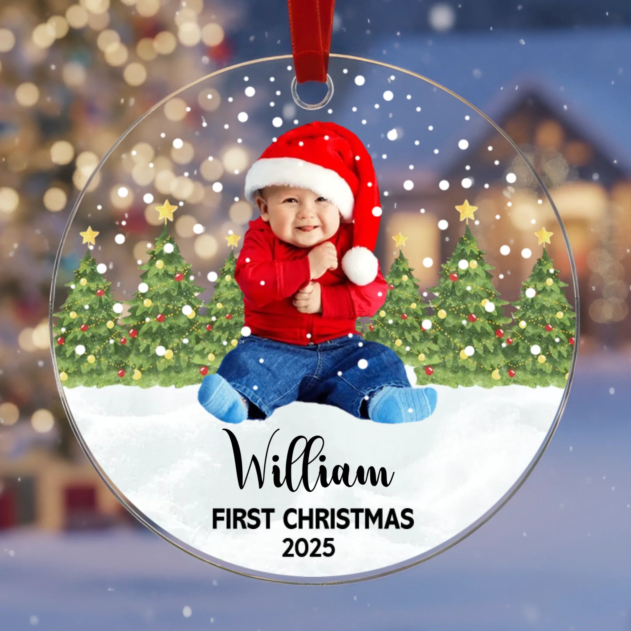 Personalisierte „Baby’s First Christmas“-Acrylkugel – Mit eigenem Foto, Name & Farbauswahl für den Text | Unvergängliches Andenken für Neugeborene – Perfektes Geschenk für den Weihnachtsbaum & festliche Deko