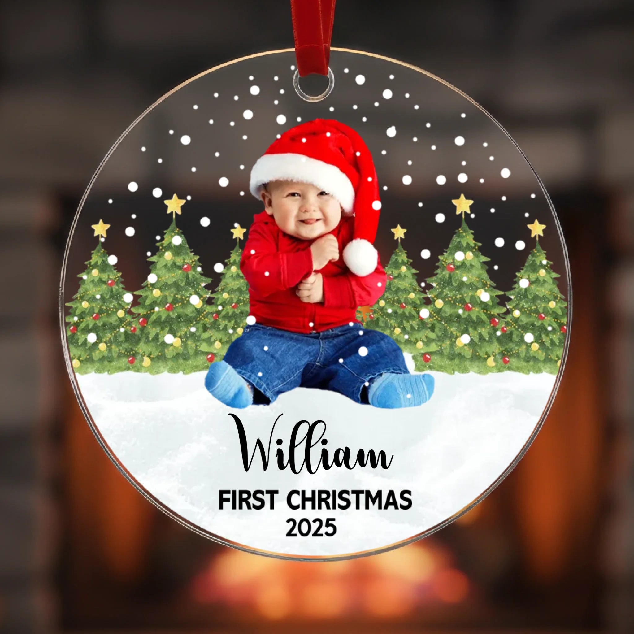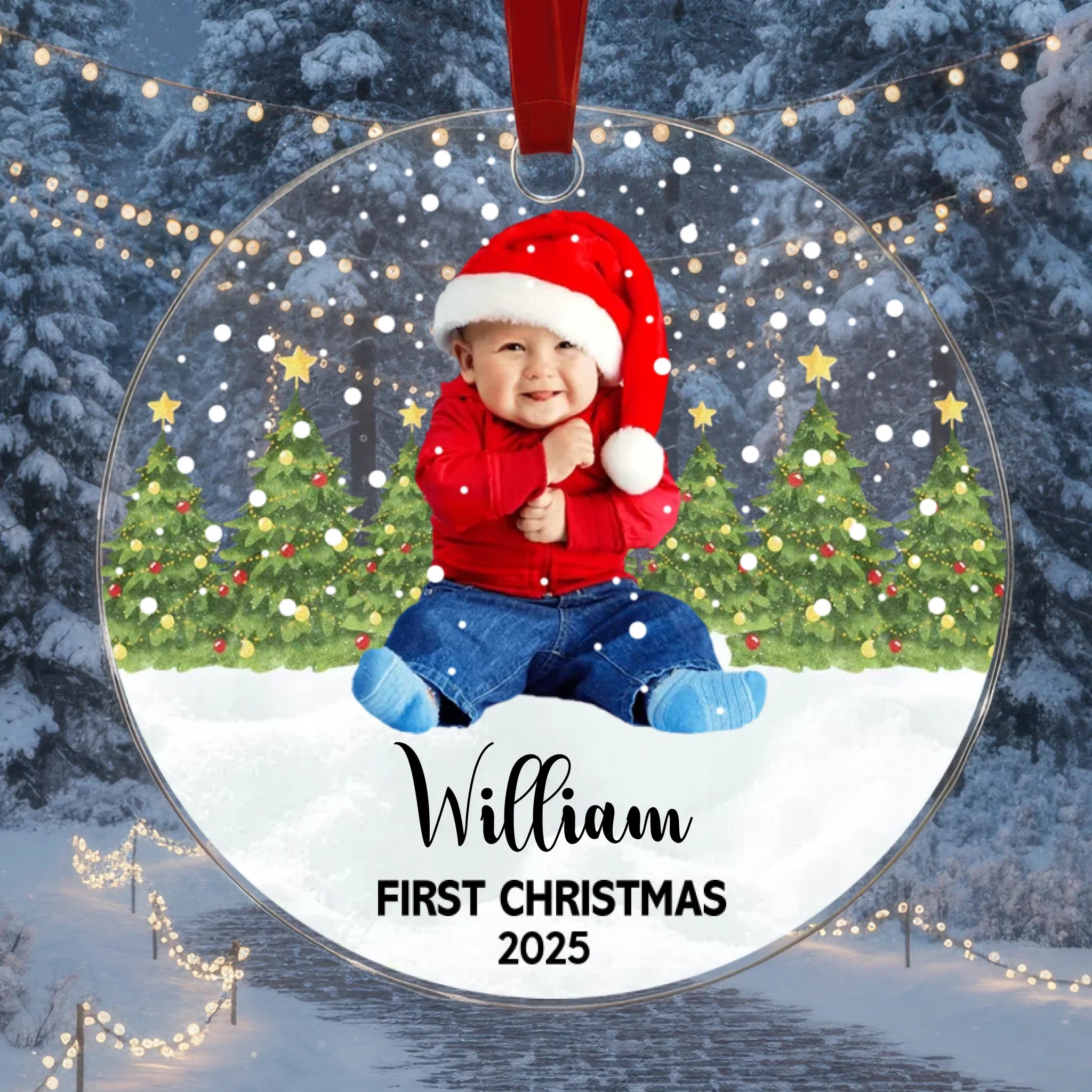 Feiern Sie das allererste Weihnachten Ihres Babys mit einem wunderschön personalisierten Acryl-Ornament, das das Foto Ihres Babys, den Namen und eine individuelle Textfarbe zeigt. Dieses bezaubernde Erinnerungsstück hält den magischen Moment der ersten Feiertage Ihres Kindes fest und verwandelt ihn in eine wertvolle Erinnerung, die Sie Jahr für Jahr präsentieren können. Perfekt zum Schmücken Ihres Weihnachtsbaumes, als Geschenk für Ihre Liebsten oder als lebenslanges Andenken.