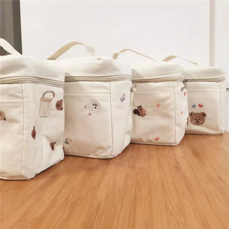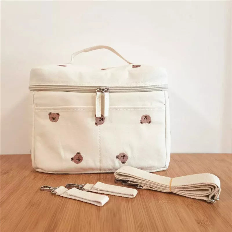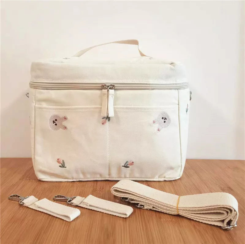 Erleben Sie Ihr Elternleben mit unserer Babyflaschen-Kühltasche – eine perfekte Kombination aus Komfort und Stil. Der Reißverschluss sorgt für die Sicherheit Ihrer Gegenstände, während der hochwertige Baumwollstoff für Komfort und Strapazierfähigkeit sorgt.