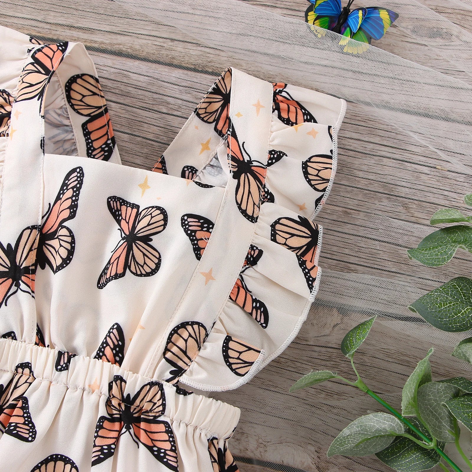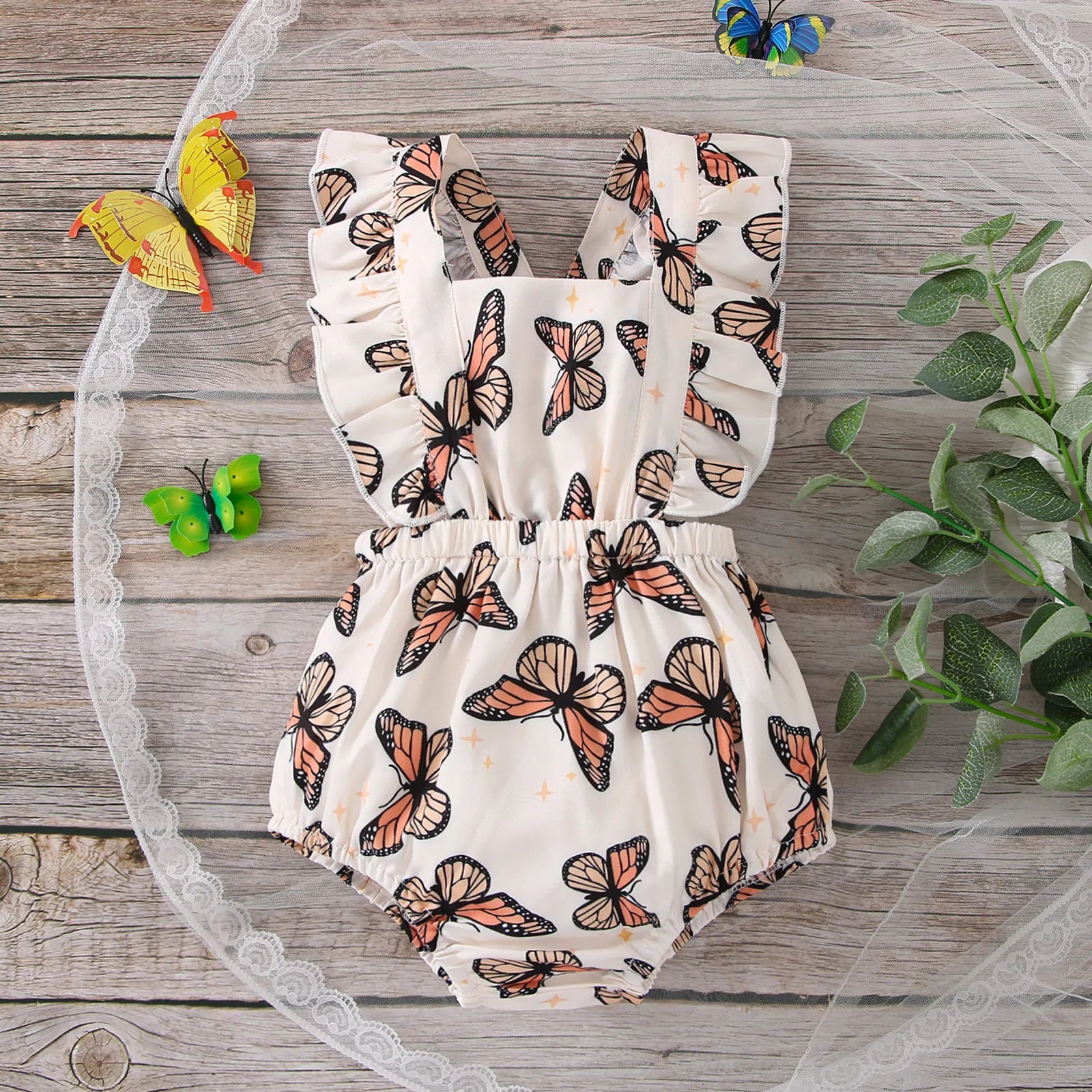 Wir präsentieren unseren bezaubernden Rüschen-Body mit Schmetterlingsmuster für Babys.