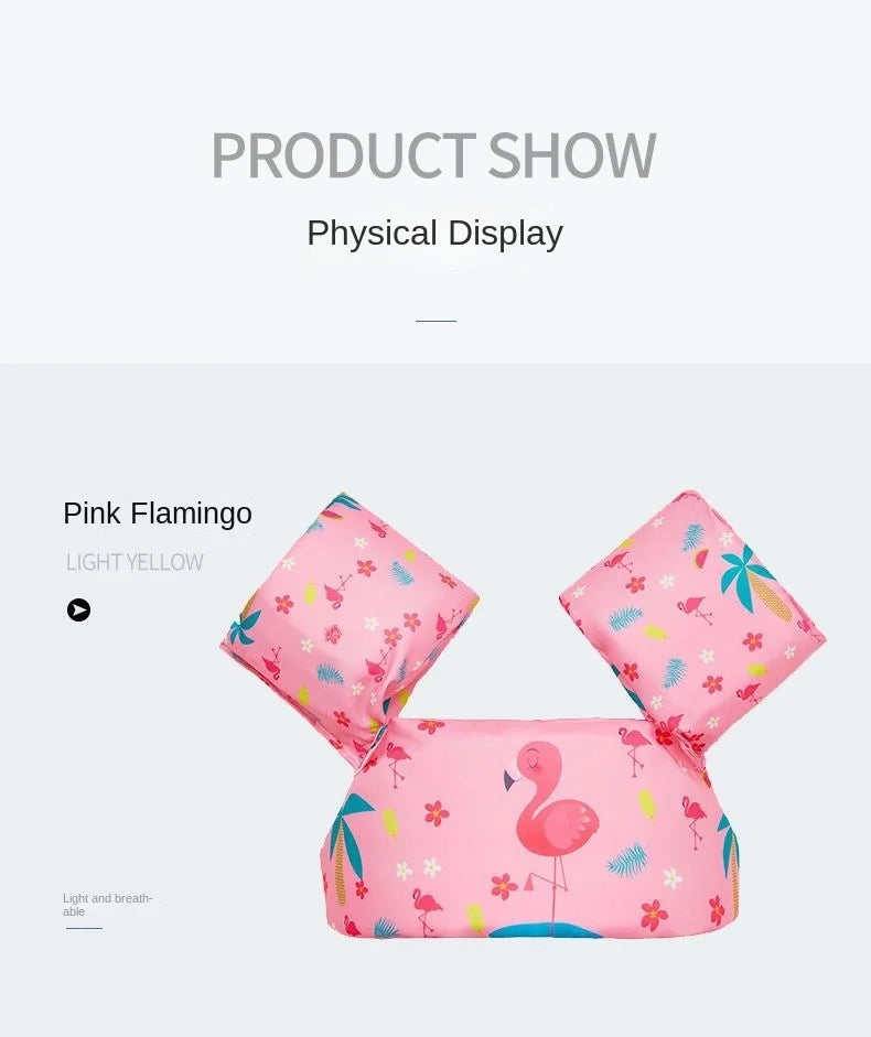 Safety and Comfort: Our life jacket float ensures that babies can enjoy the water safely, thanks to its buoyant foam and secure arm sleeve design.
