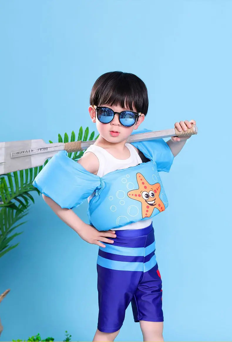 Crafted from durable PVC material, this life jacket float is designed to provide safety and support for babies aged 2 years and above during swimming activities. With its cartoon arm sleeve design, it adds a fun and playful touch to your little one's swimming experience.