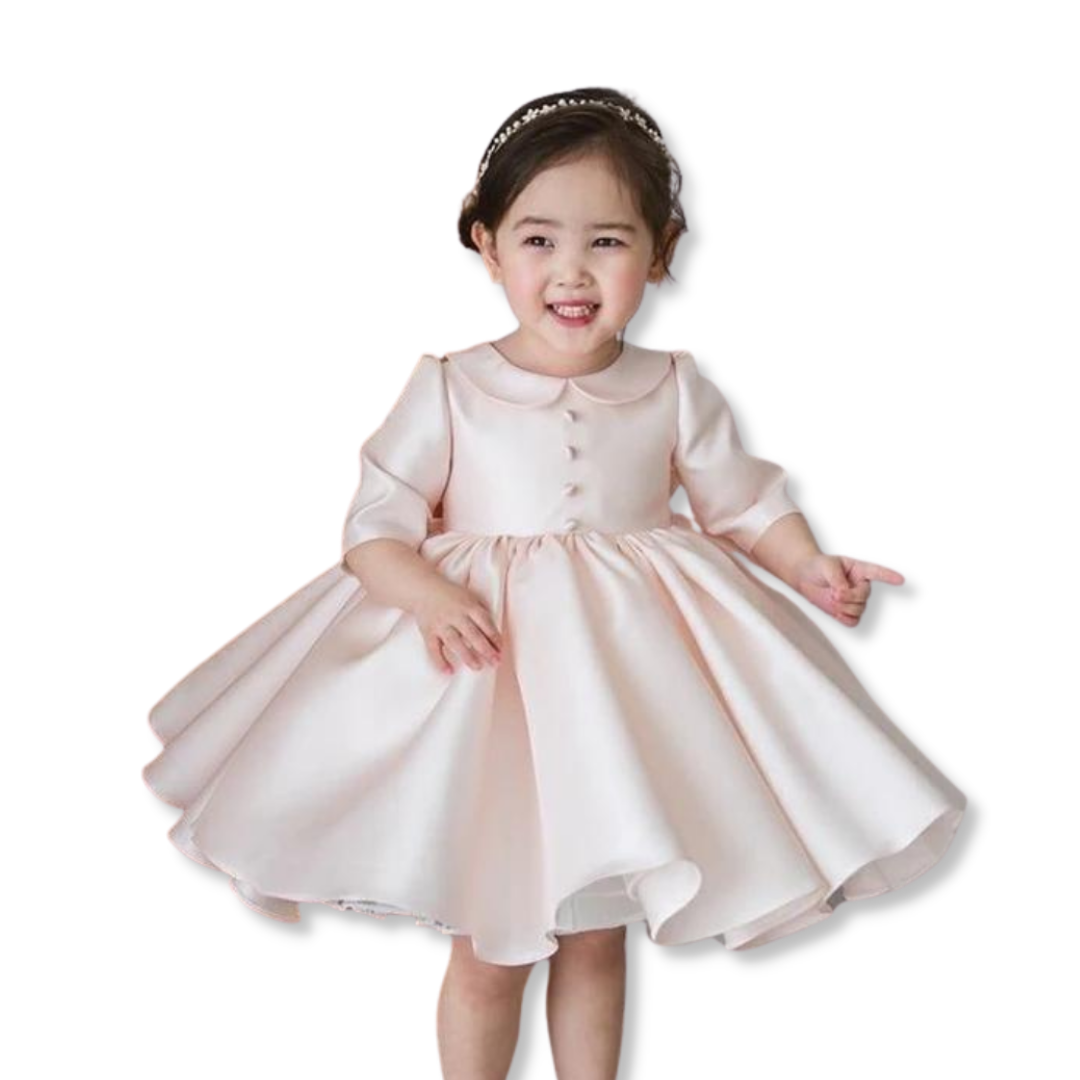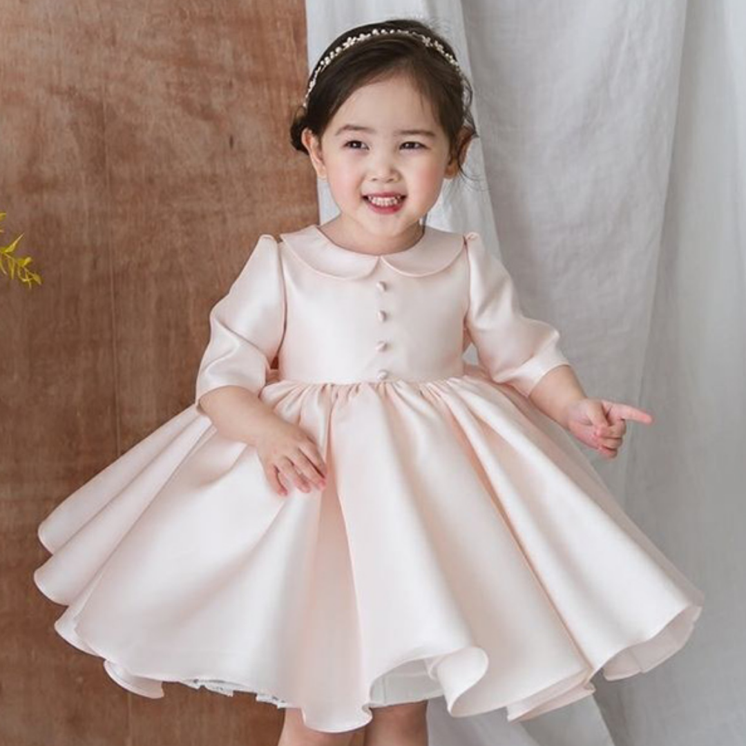 Robe en soie de baptême à la mode pour bébé avec col et manches longues