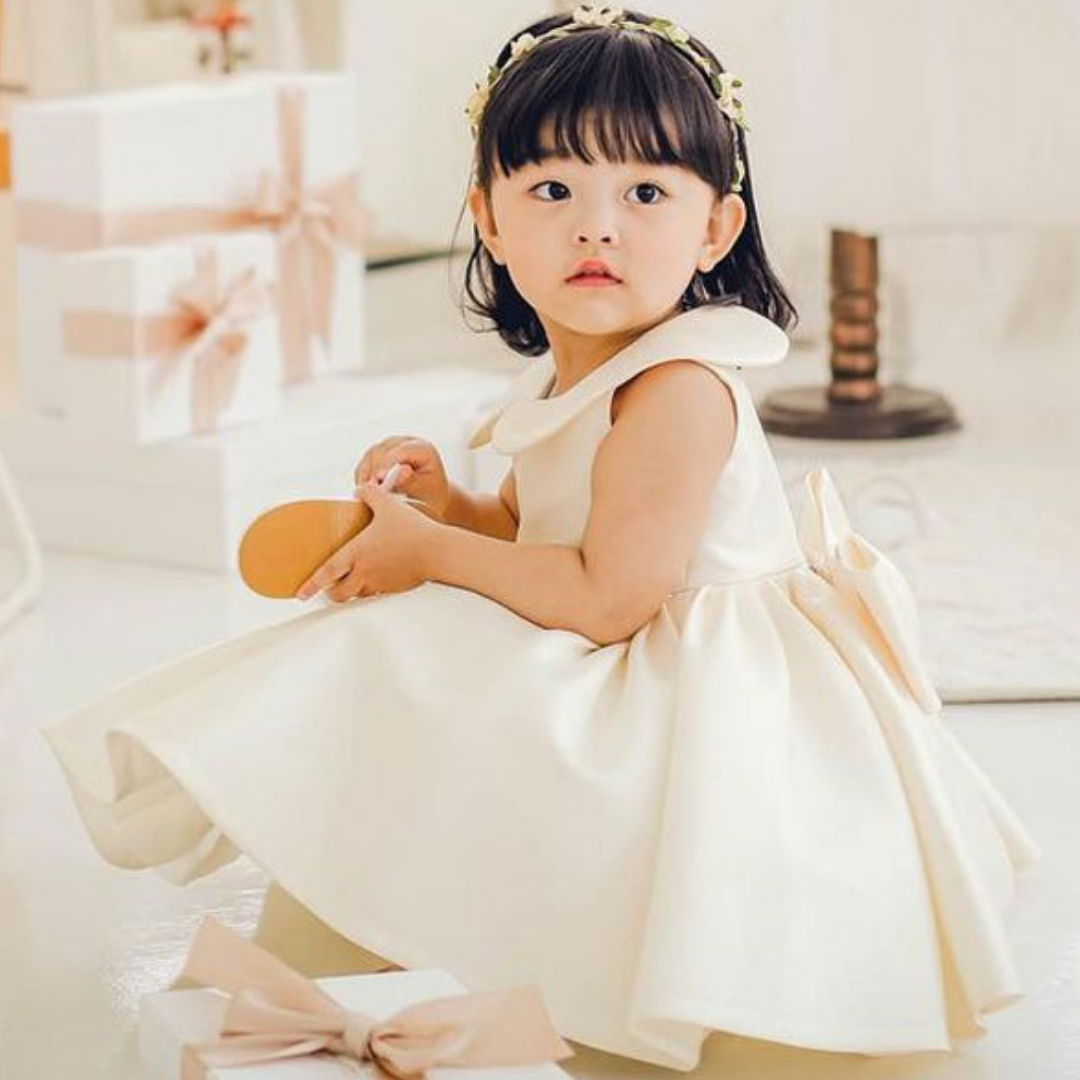 Robe élégante en soie sans manches pour bébé avec col fantaisie