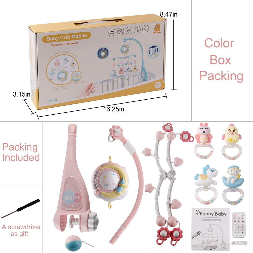 Einfach zu bedienen: Leicht zusammenzubauen und am Kinderbett zu befestigen. Mit der Fernbedienung können alle Funktionen der Spieluhr gesteuert werden. Kann überallhin mitgenommen werden, wo das Baby hingeht. Für Kinderbetten, Laufställe, Tragen, Kinderwagen, Wiegen und mehr geeignet