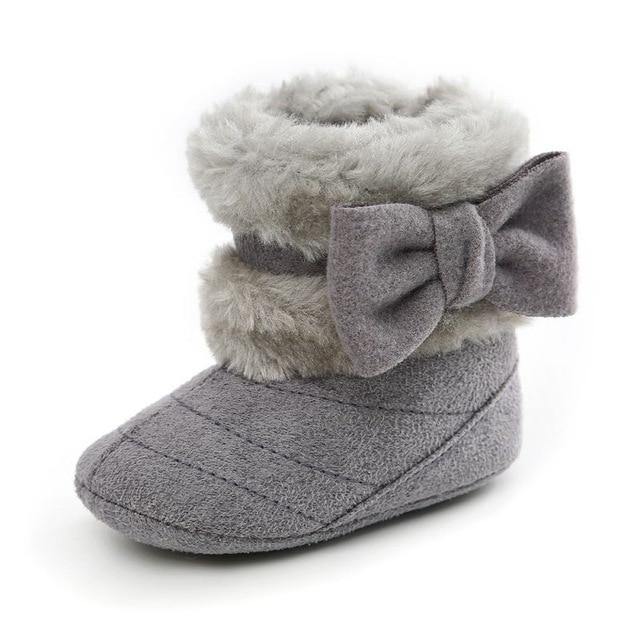 Baby Mädchen Schleifen-Stiefel sind trendige Winterschuhe für kleine Mädchen, die sich gerne mit Stil herausputzen. Die Stiefel sind mit Kunstfell gefüttert und mit einer Schleife versehen, um ein auffälliges modisches Statement zu setzen.