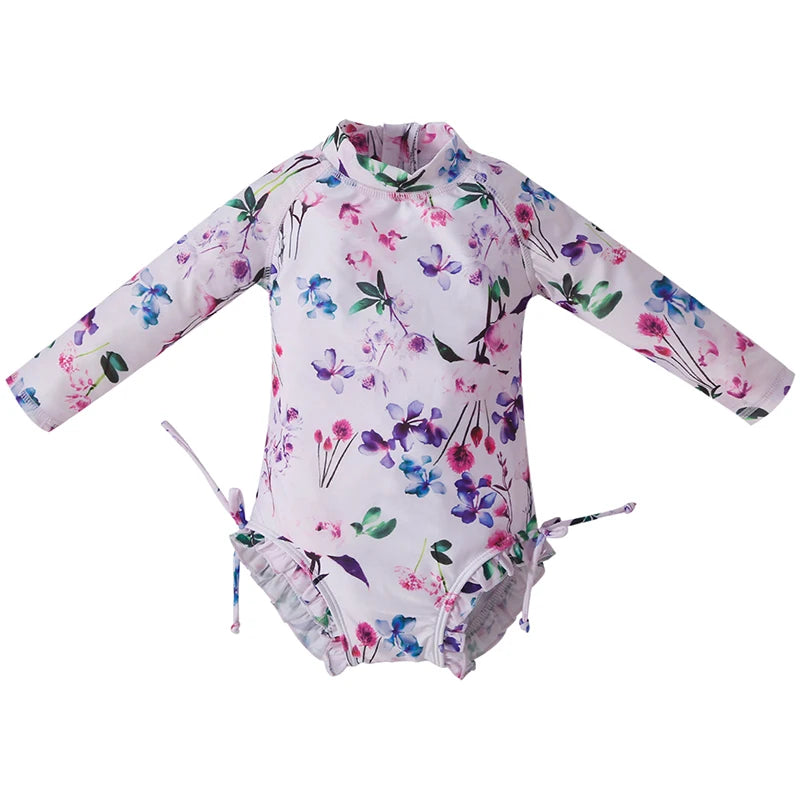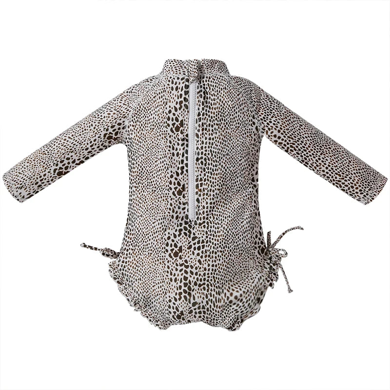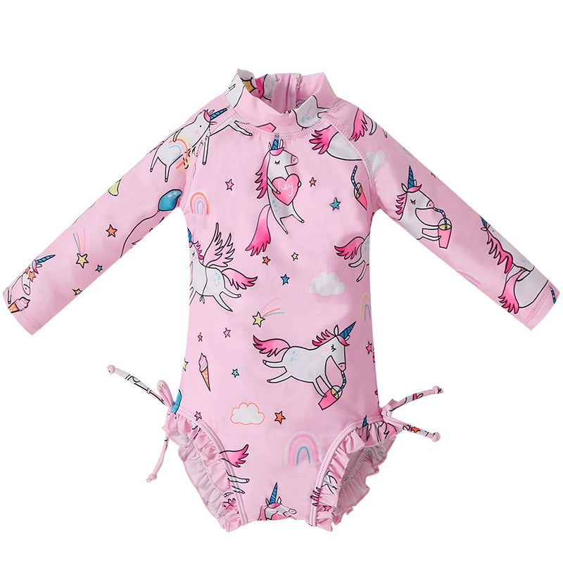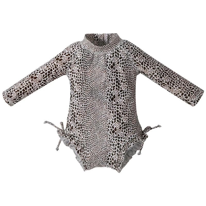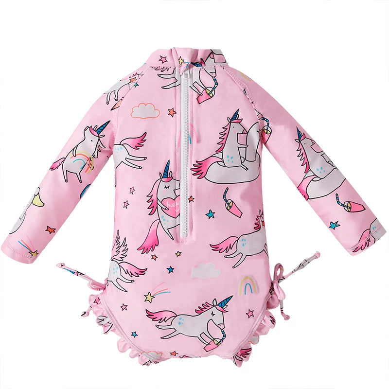 Verwandeln Sie jeden Pooltag in ein modisches Abenteuer mit unserem Langarm-Badeanzug für Baby-Mädchen. Sehen Sie zu, wie Ihr Kleines das Wasser mit Stil genießt.