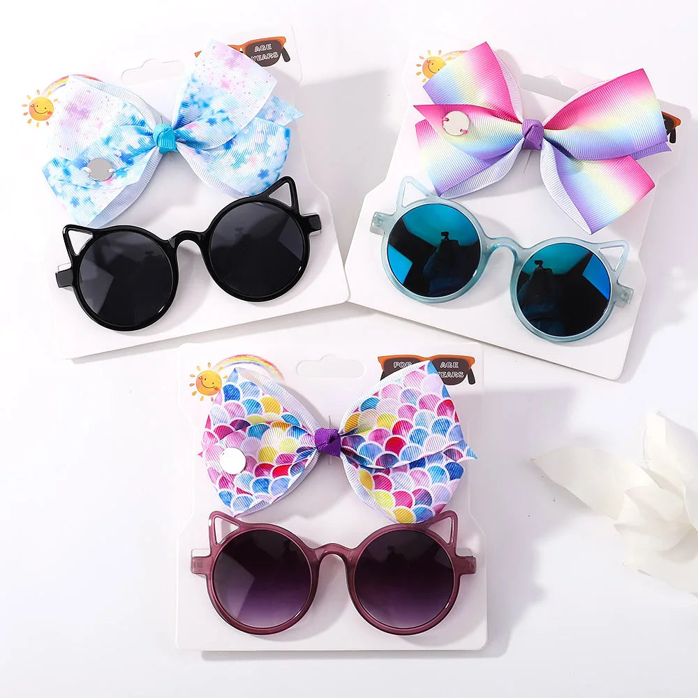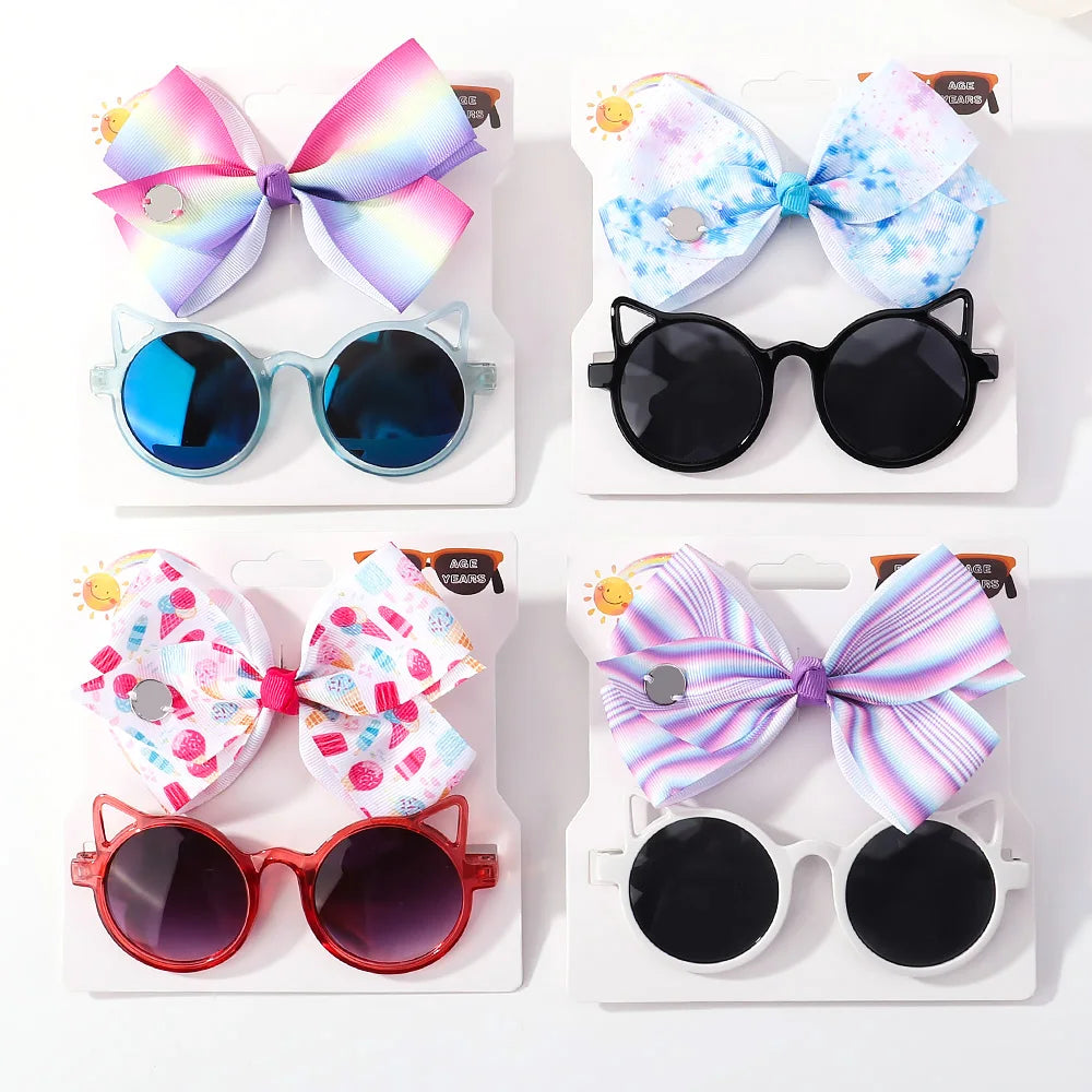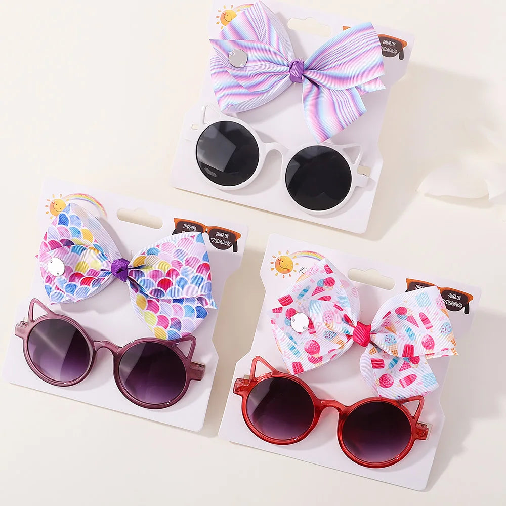 Haarschmuck-Set für Baby-Mädchen: Schleifen und Cartoon-Sonnenbrille