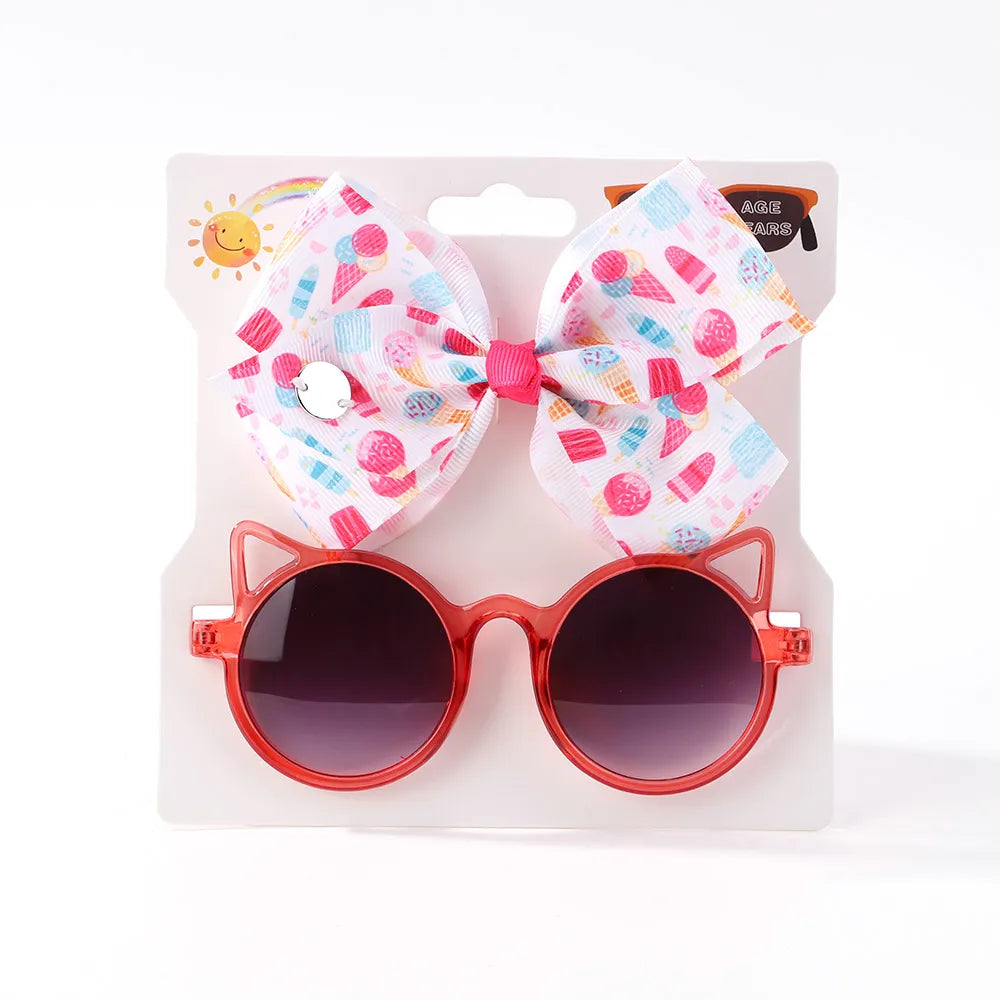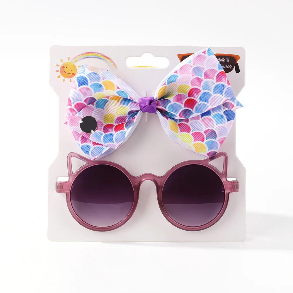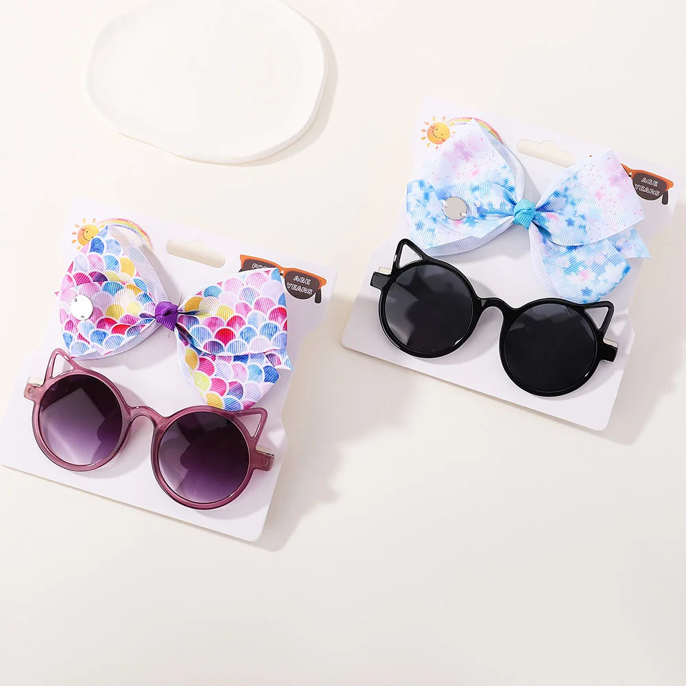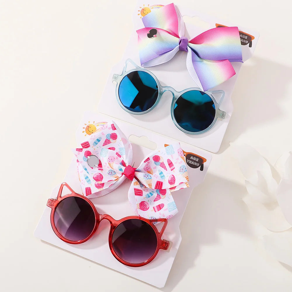 Haarschmuck-Set für Baby-Mädchen: Schleifen und Cartoon-Sonnenbrille