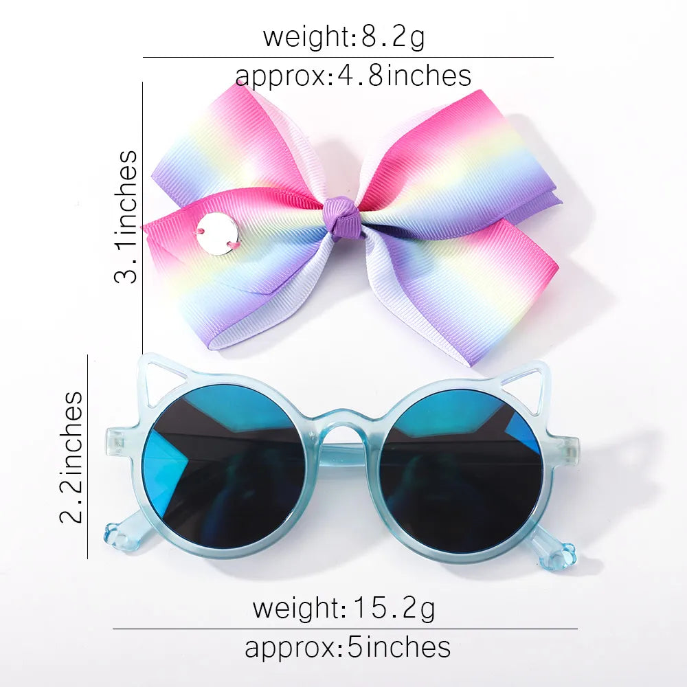 Verschönern Sie den Stil Ihrer Kleinen mit unserem bezaubernden Haarschmuck-Set für Baby-Mädchen. Das Set enthält eine bezaubernde Schleife und eine trendige Cartoon-Sonnenbrille und ist somit die perfekte Wahl für den Strandurlaub Ihres Babys oder jedes Outdoor-Abenteuer.