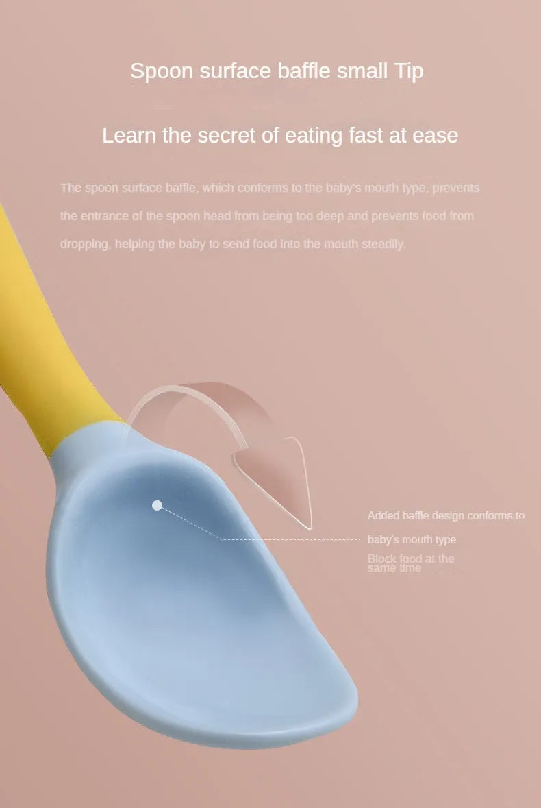 Wir präsentieren das sichere und praktische Löffel-Gabel-Set aus Silikon für Babys zum Füttern von Kleinkindern!