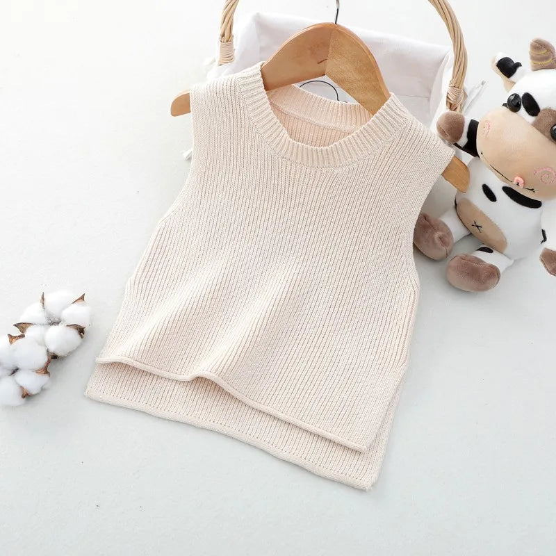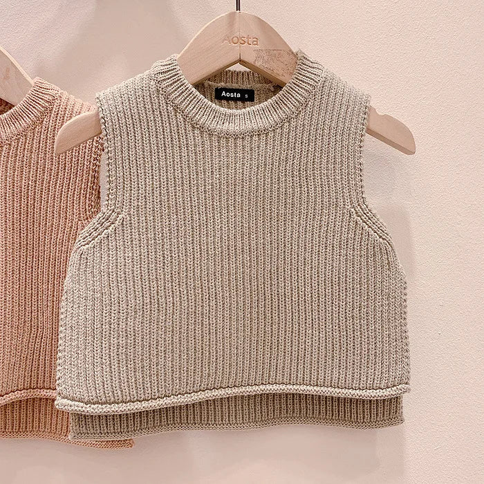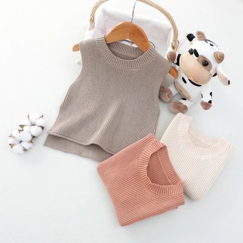 Wir präsentieren unsere ärmellose Strickweste für Babys – Herbstoberbekleidung für Kleinkinder