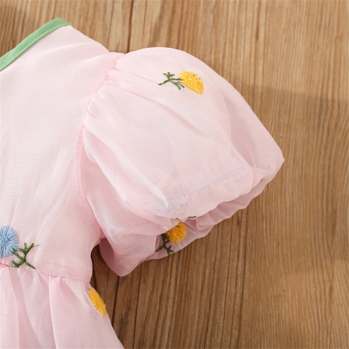 Sommerkleid für Kinder mit Schleife auf der Rückseite, Blumenstickerei, Kurzarm, einfarbig, Rundhalsausschnitt, 0–3 Jahre Mädchenkleid