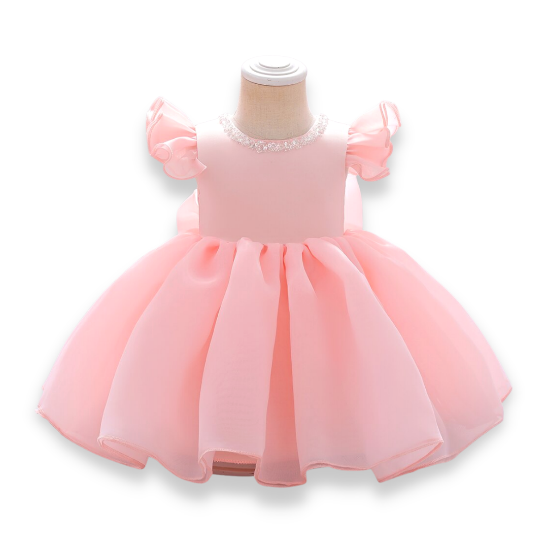 - Perlenbesetzter Halsausschnitt und großes Schleifendesign.