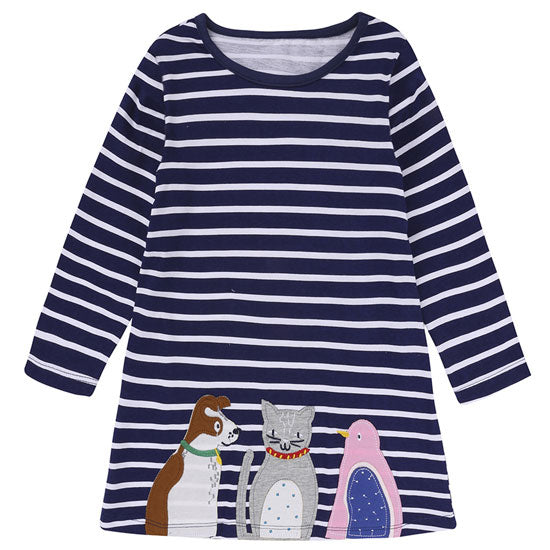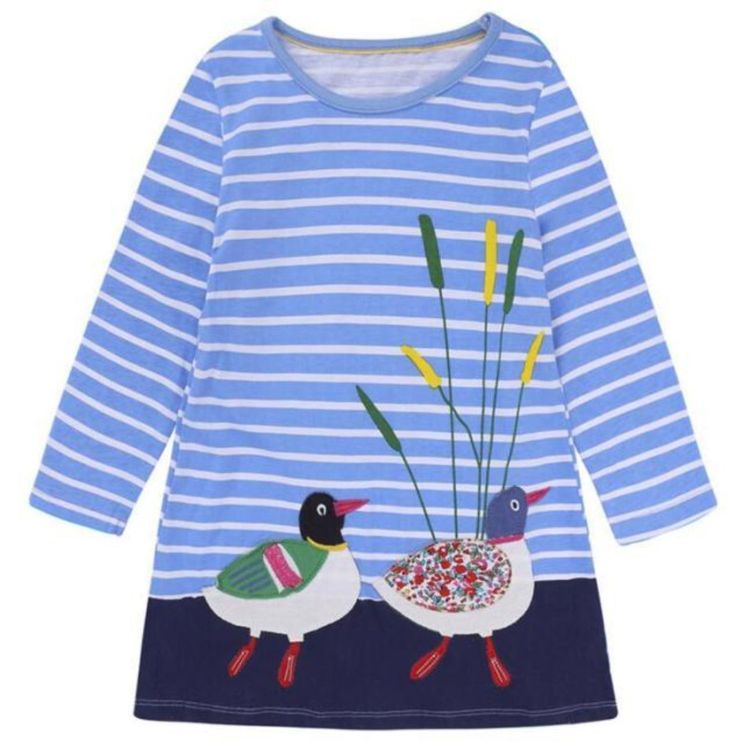 Dieses Applikationskleid mit Vogel-Design und langem Ärmel für Kinder ist perfekt für den Alltag. Dieses bequeme Kleid mit langen Ärmeln hat eine attraktive Vogel-Applikation darauf. Das wichtigste Merkmal des Kleides ist, dass es aus 100% Baumwolle hergestellt ist. Es ist außerdem komfortabel und leicht zu tragen.