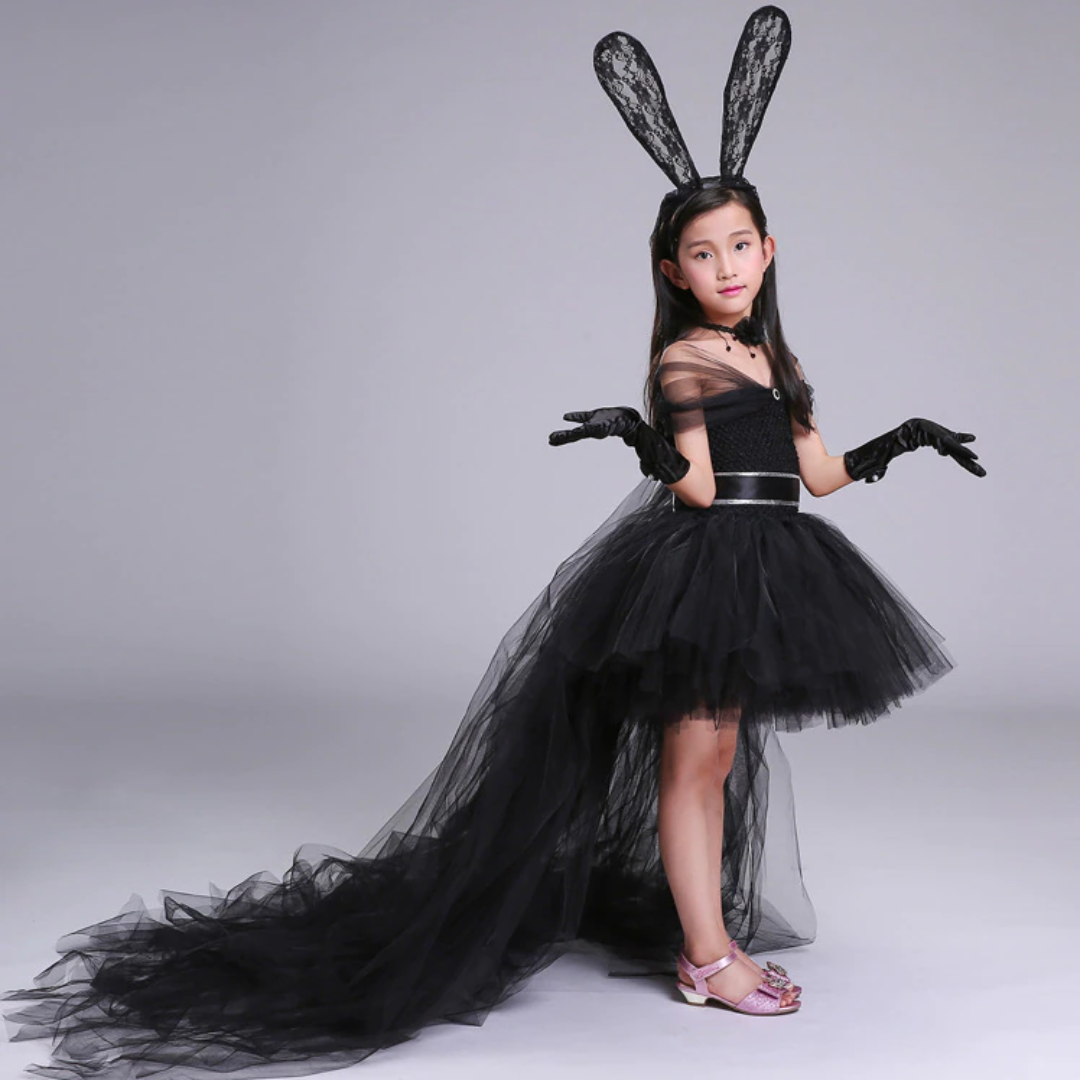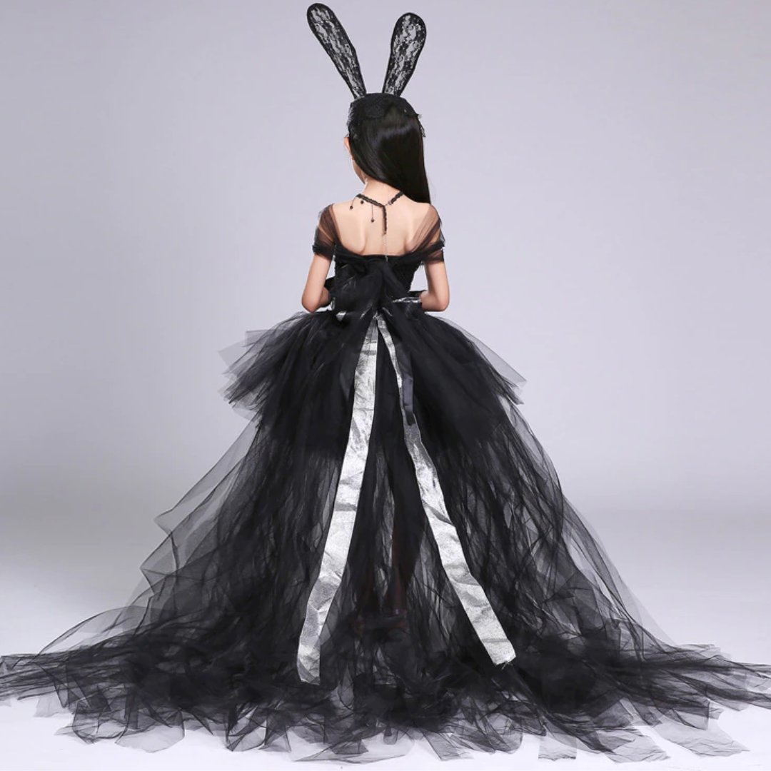 Dieses von schwarzen Hasen inspirierte Prinzessinnenkleid mit Tüll-Schleppe ist die perfekte Wahl für Ihre kleine Prinzessin. Das Kleid vereint Kunst, Mode, Schönheit und Kultur. Es ist ein Kleidungsstück, das die Identität Ihrer Kinder und ihren sozialen Status repräsentiert. Ein perfektes Partykleid für Mädchen. Es hat ein wunderschönes Design, gute Qualität und einen fairen Preis. Es ist sehr einfach zu tragen und zu waschen. Ihre Kinder werden es lieben!