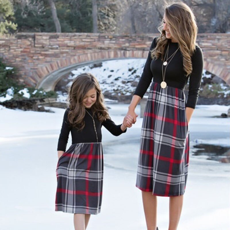 Vestido combinado "Mamá y Yo" con top negro y falda de cuadros