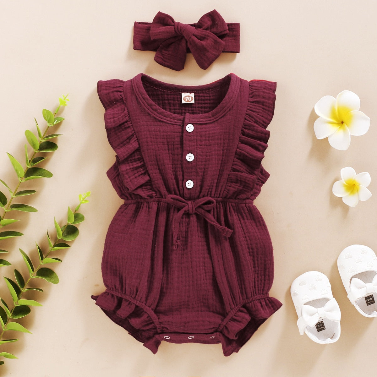 Die alte viktorianische Ära ist wieder im Trend – warum also nicht den Look Ihres Babys mit unserem neuen Schleifen-Rüschen-Strampler zeigen? Er verleiht Ihrem Baby einen schicken Look. Diese Rüschen-Strampler sind aus hochwertigem Material gefertigt, das weich und angenehm zu tragen ist. Die Strampler sind mit niedlichen Knöpfen und gerüschten Ärmeln verziert. Der Strampler hat einen elastischen Sitz, der eine perfekte Passform bietet.