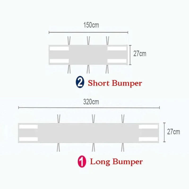 Set enthält: 1x kurzer Stoßfänger 140 cm × 27 cm + 1x langer Stoßfänger 322 cm × 27 cm