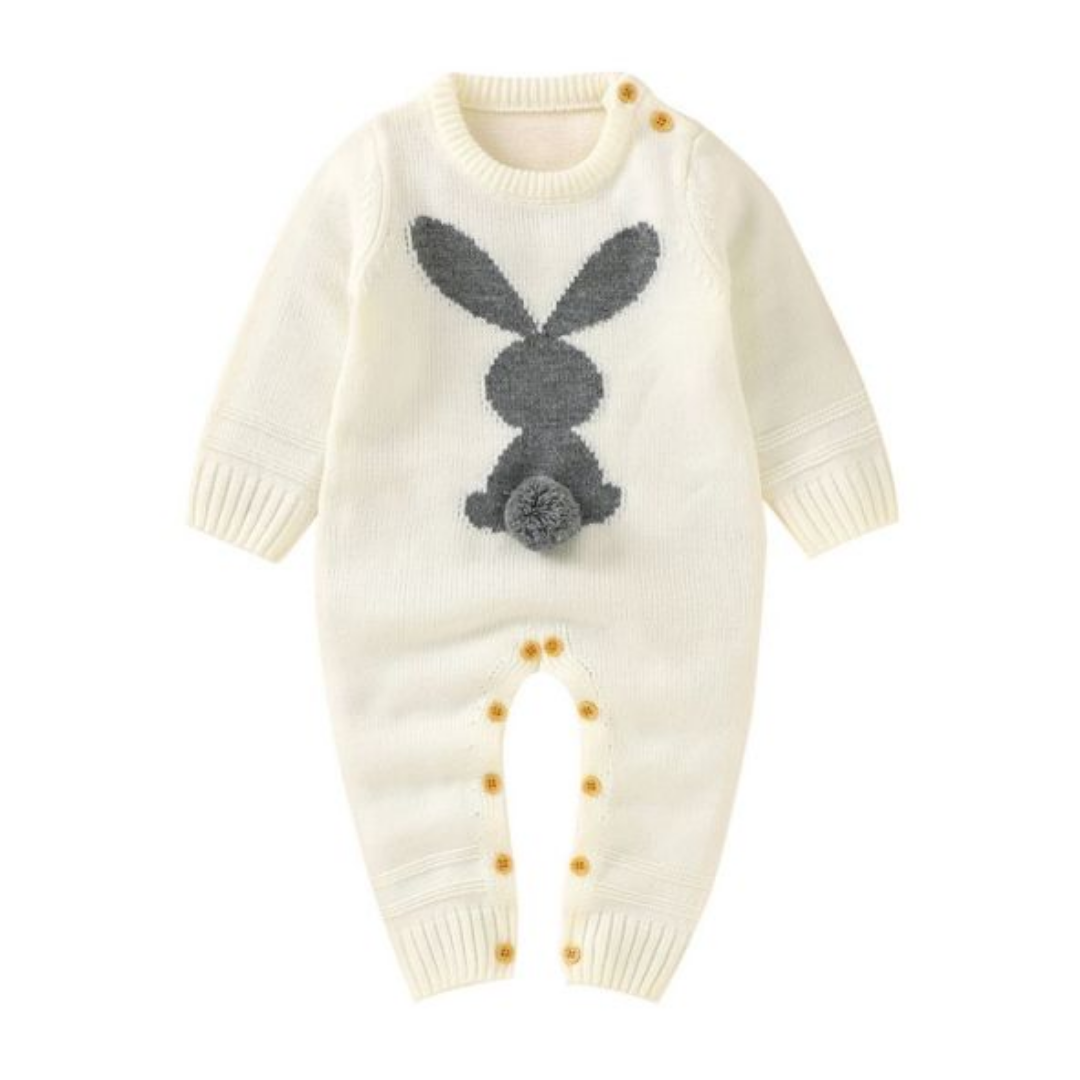 Buzo Enterizo de Manga Larga con Estampado de Silueta de Conejito