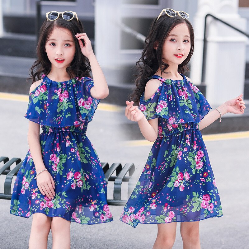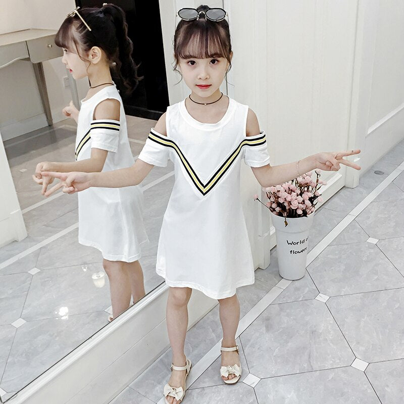 バタフライプリントデザイン コールドショルダー 女の子用サマードレス