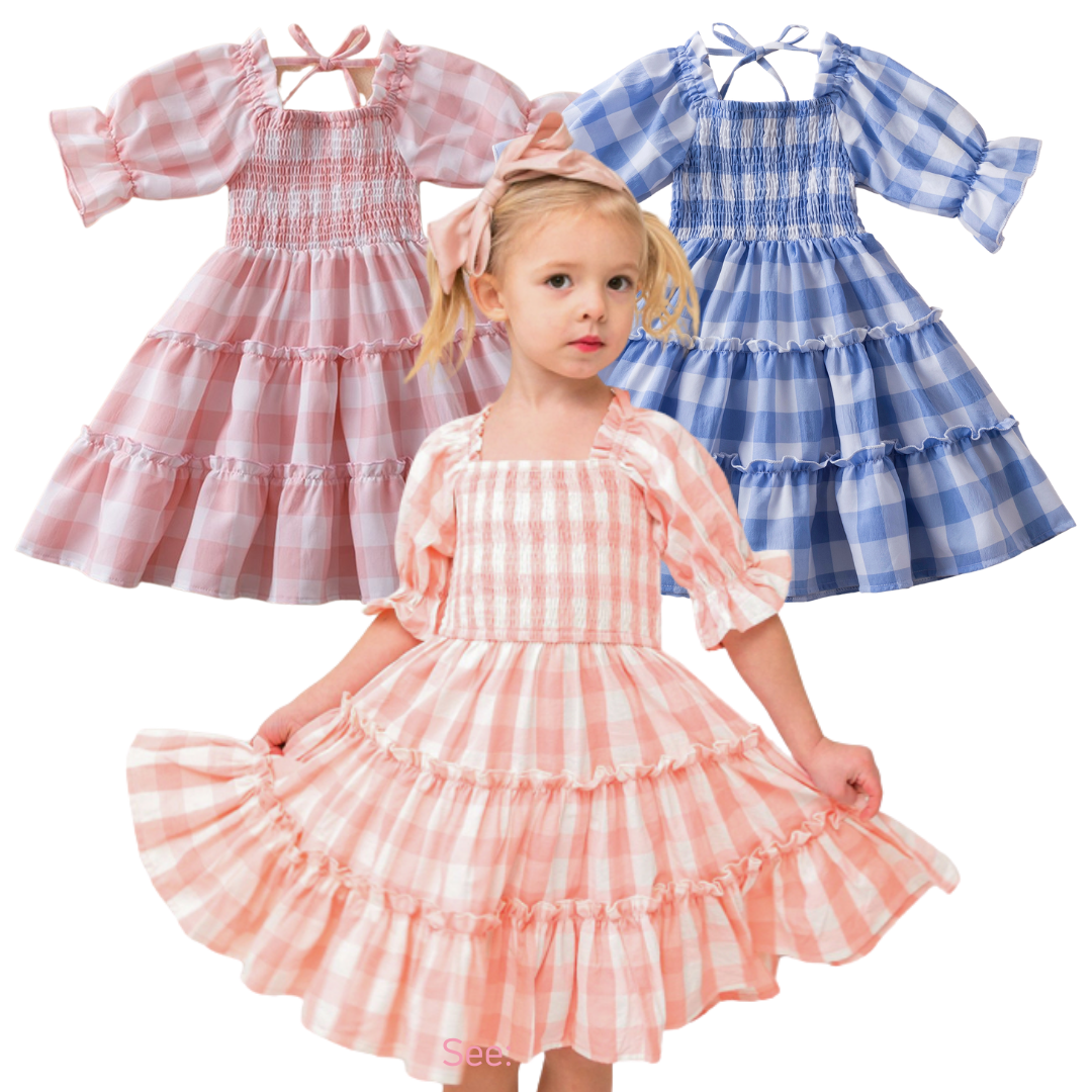 Dieses Mädchen-Sommerkleid mit Karomuster und Laternenärmeln ist ein niedliches und warmes Kleid für Mädchen. Diese stylischen Kurzarmkleider sind die perfekte Wahl für Ihre liebe kleine Tochter. Der Stoff ist weich und angenehm wie Satin, was es Ihrem Kind ermöglicht, es den ganzen Tag zu tragen. Es ist ein tolles Geschenk zu Geburtstagen, Weihnachten und anderen besonderen Anlässen!