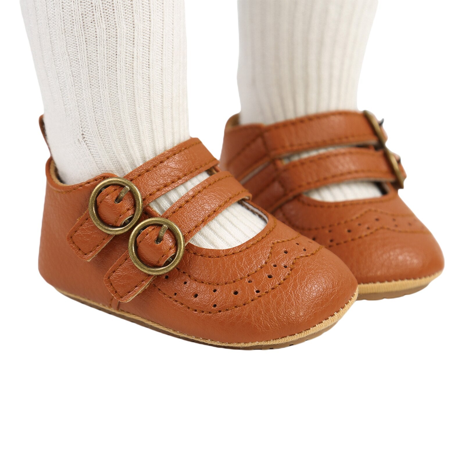 Diese klassischen Baby-Erstlaufschuhe mit Schnallen- und Klettverschluss sind speziell für Babys entworfen. Das Design des Schuhs ist süß, flexibel, leicht, rutschfest und sicher.