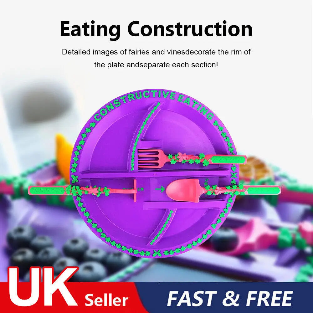 Constructive Eating Utensil Set and Plate for Kids, Dinneractive Fairy/Vines Themed Plate with Fork and Spoon, Making Mealtimes Fun and Engaging (BPA-Free)