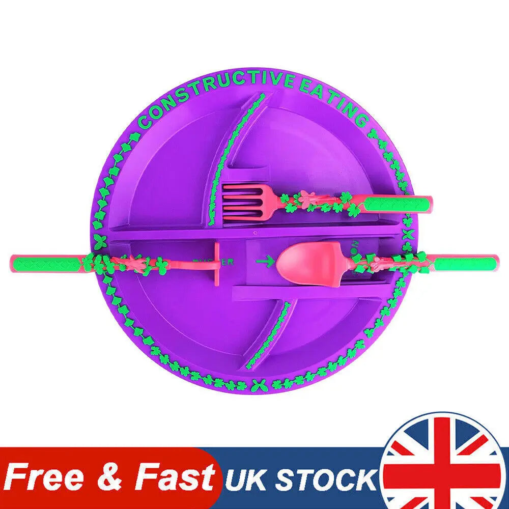 Make mealtimes fun, engaging, and educational! Click 'Add to Cart' now to secure this constructive eating utensil set and plate!