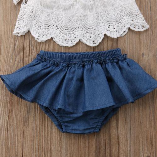 Bei angenehm windigem Wetter möchten Mädchen sich mit leichter Kleidung schick anziehen. Das Häkeloberteil mit dem kurzen Rock ist trendig und die passende Wahl für draußen Zusammenkünfte. Das offenmaschige Häkeloberteil ist luftig und der breite Ausschnitt erlaubt freie, komfortable Bewegungen. Der elastische Bund sorgt für perfekte Passform, ohne die Haut des Babys zu reizen. Der marineblaue Rock hat Rüschen, was ihm einen trendigen Look verleiht, der das weiße, spitzenbesetzte Oberteil gut ergänzt.