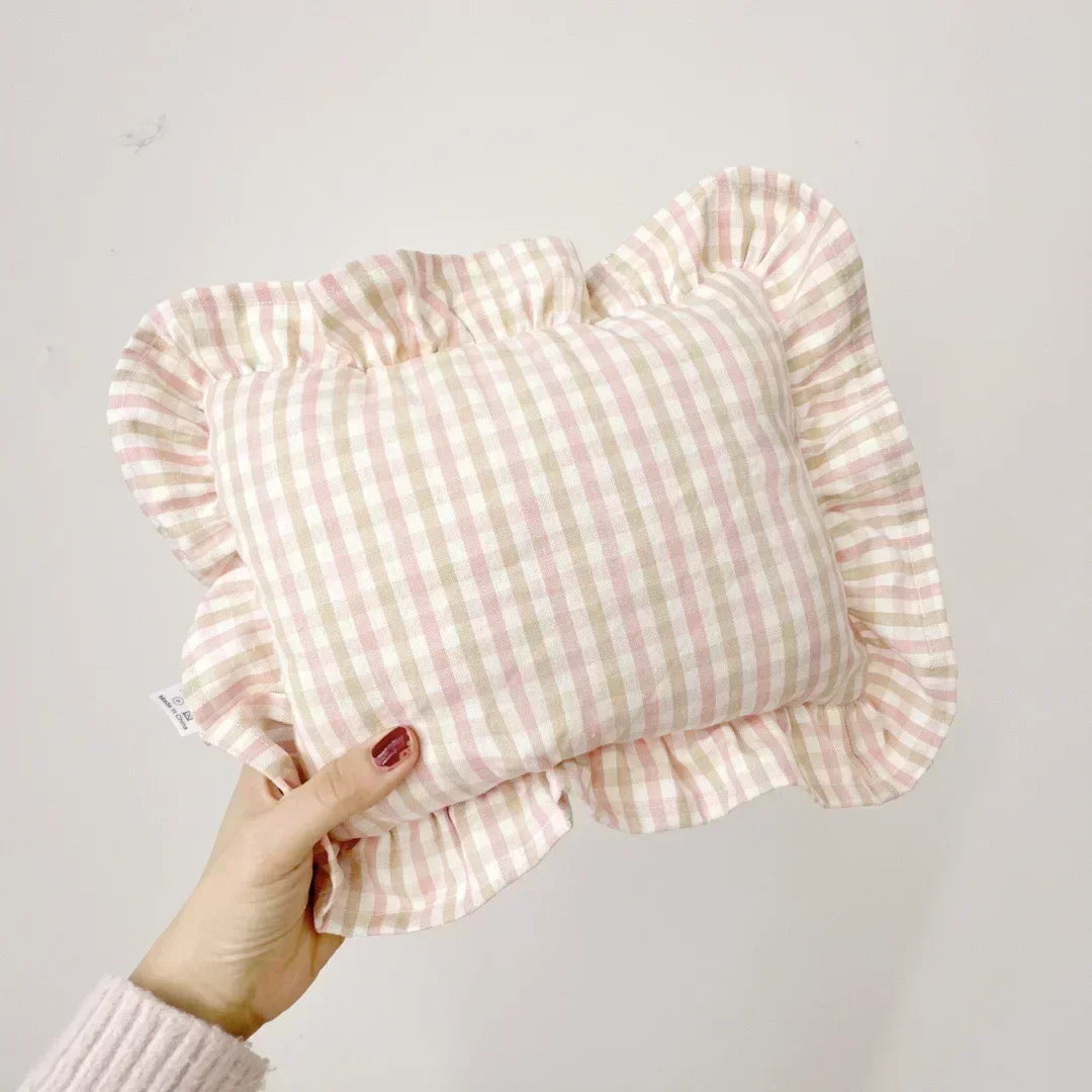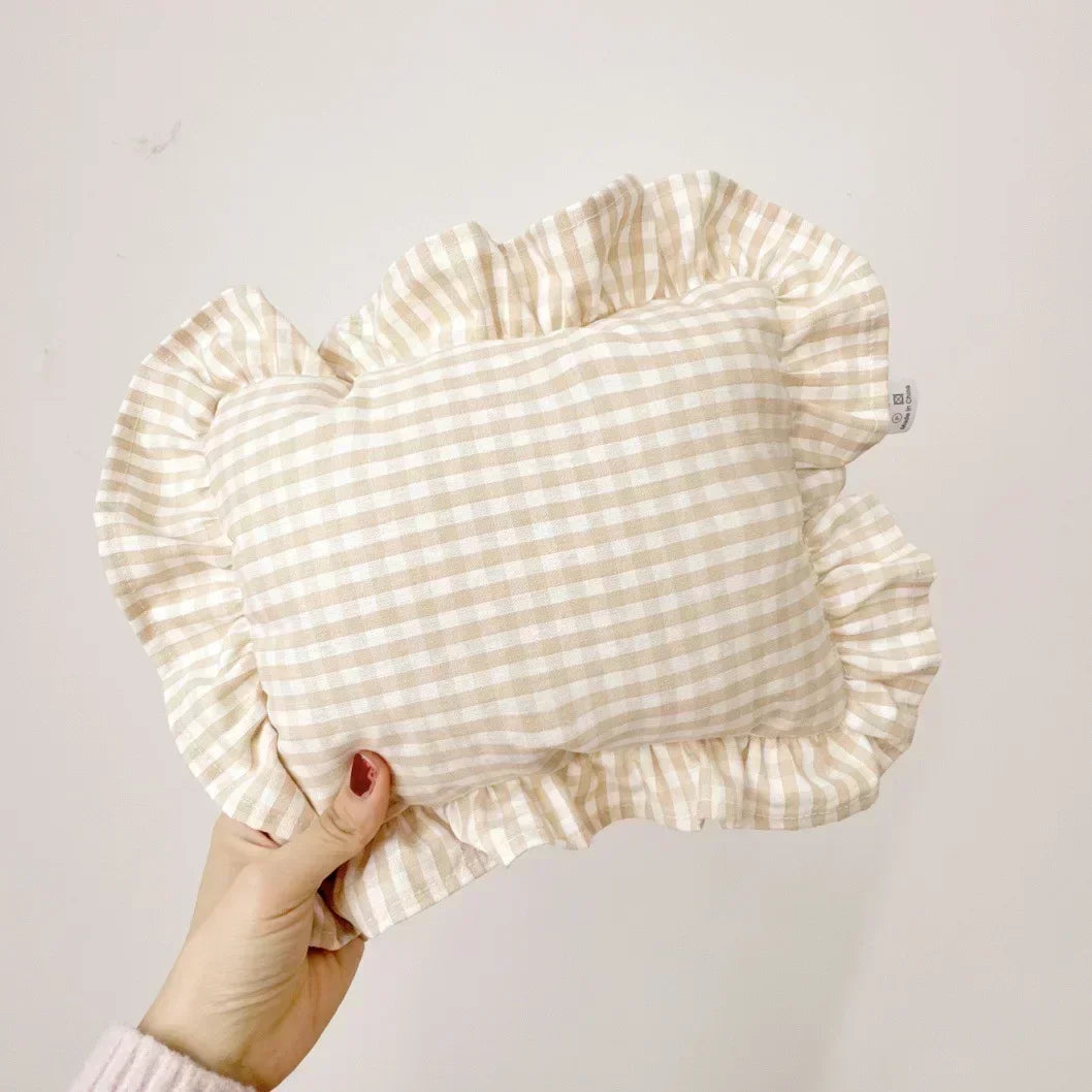 Babykissen mit individuellem Namen und Rüschen – 11"x13" Baumwollkissen für Neugeborene