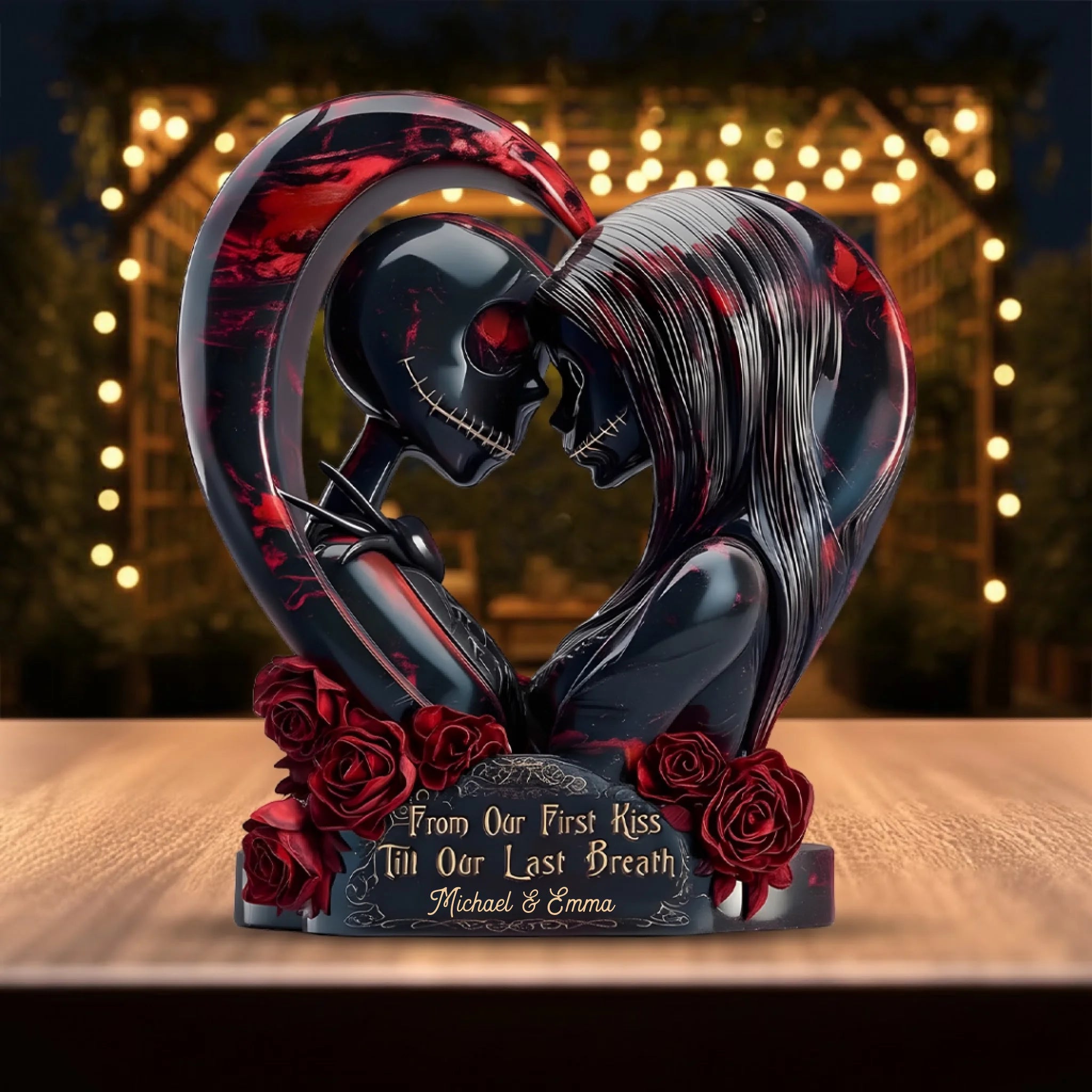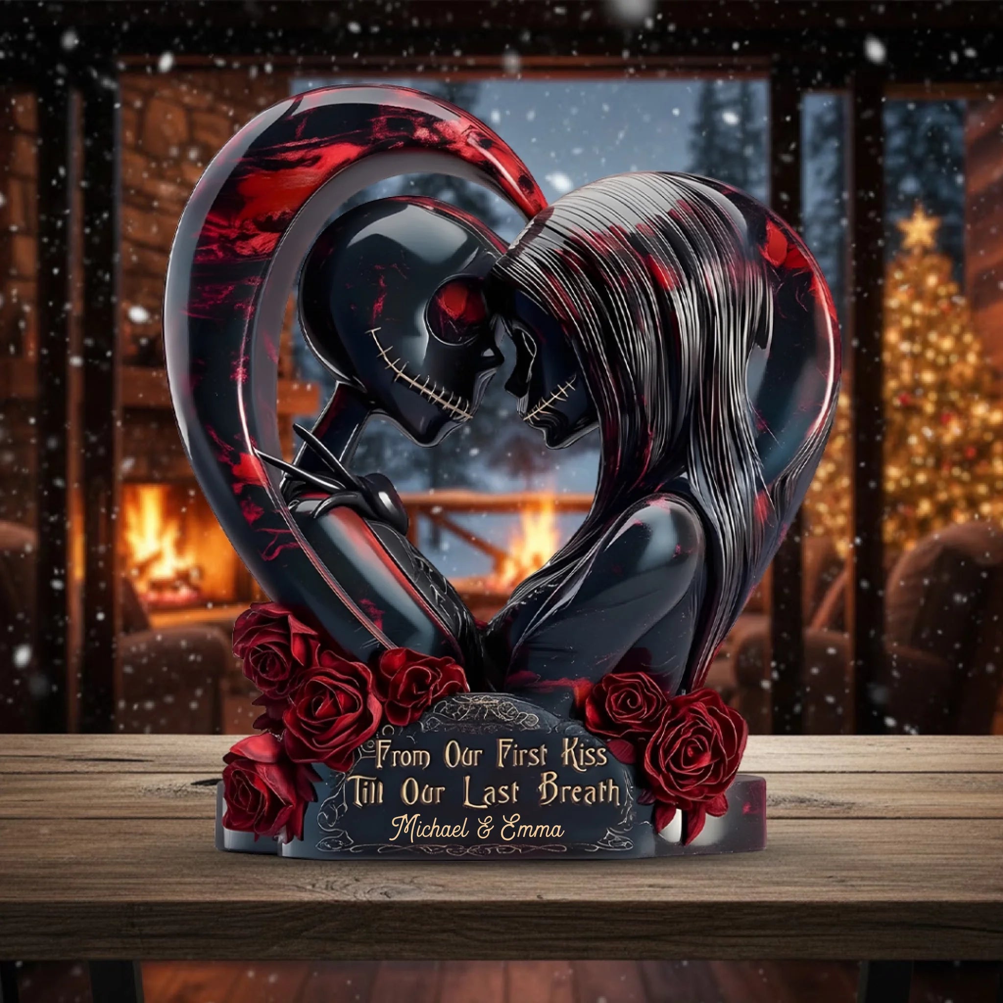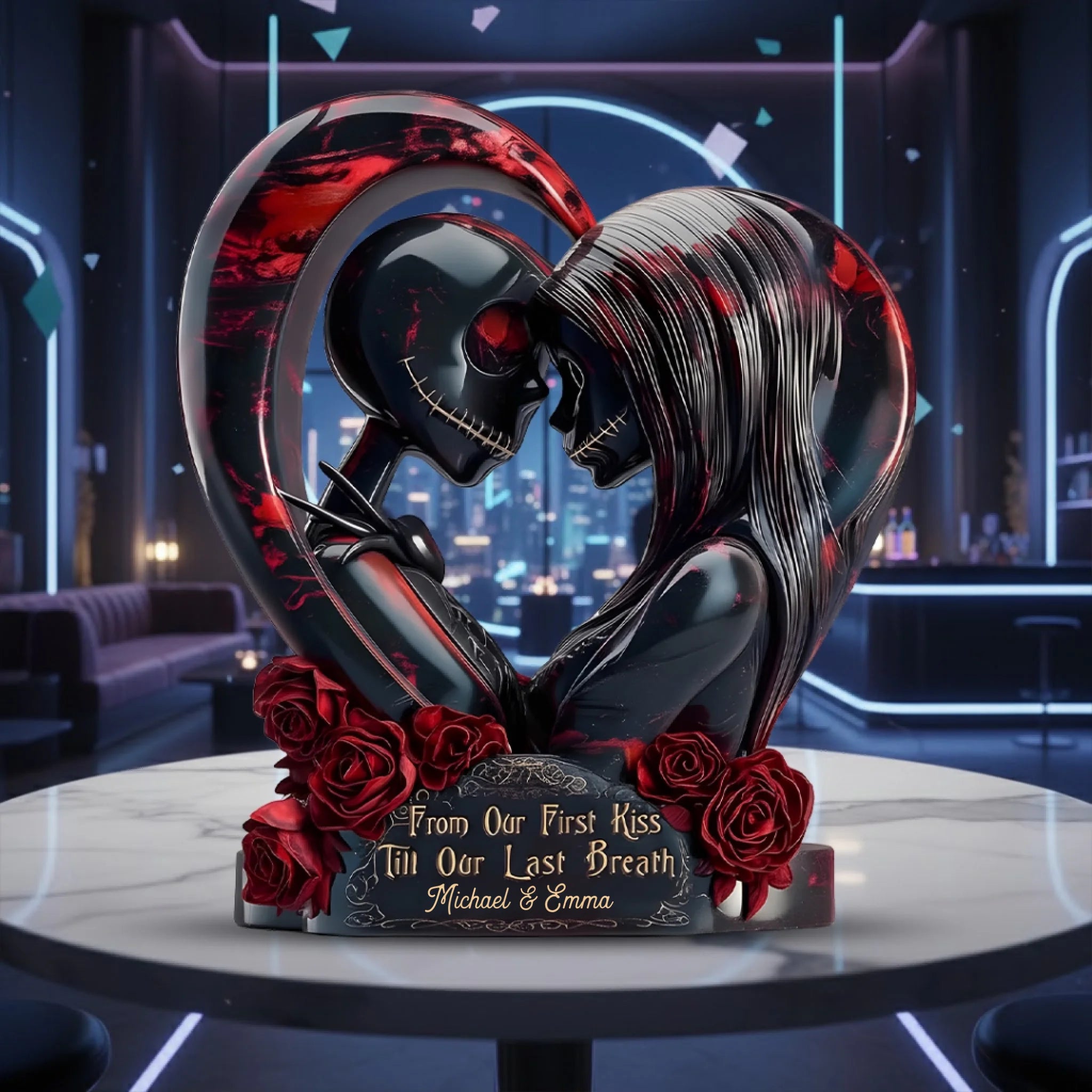 Acryltafel in individueller Form – Gothic-Paar Acryltafel | Personalisierte Paar-Namen | Einseitig bedrucktes Liebes- & Gedenkandenken | Dunkles Romantik-Jahrestagsgeschenk | Einzigartige Gothic-Heimdekoration