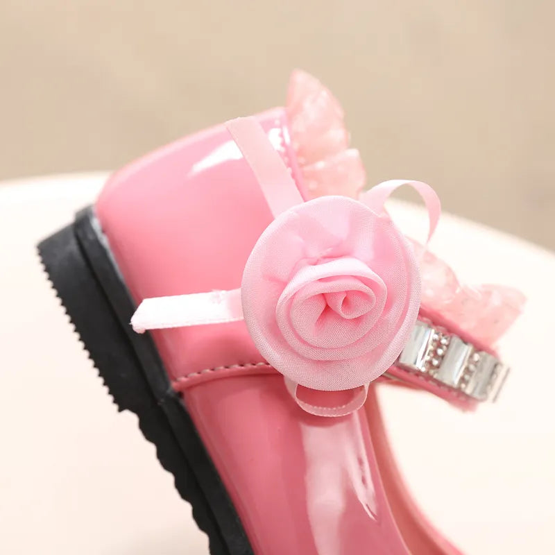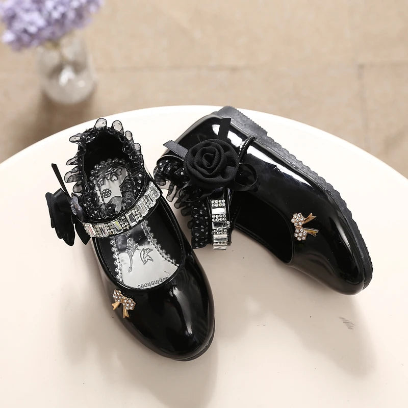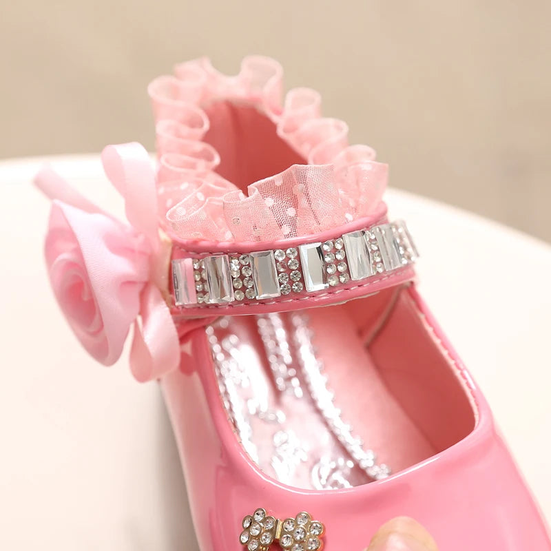 Süße Schuhe mit Schleife und Strass-Blumen (3–11 Jahre)