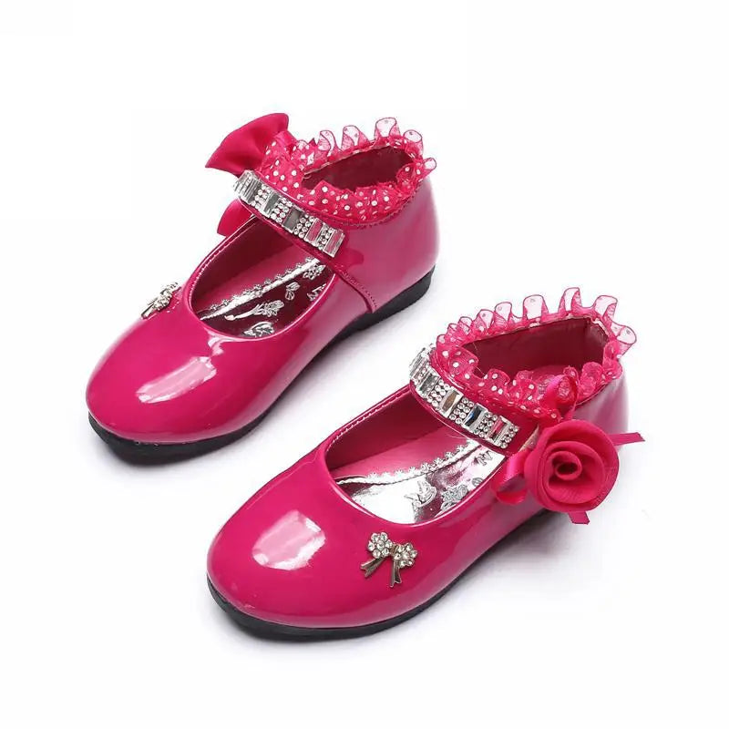 Wir präsentieren unsere bezaubernde Kollektion: Niedliche Schuhe mit Schleife und Strasssteinen und Blumen (3–11 Jahre)