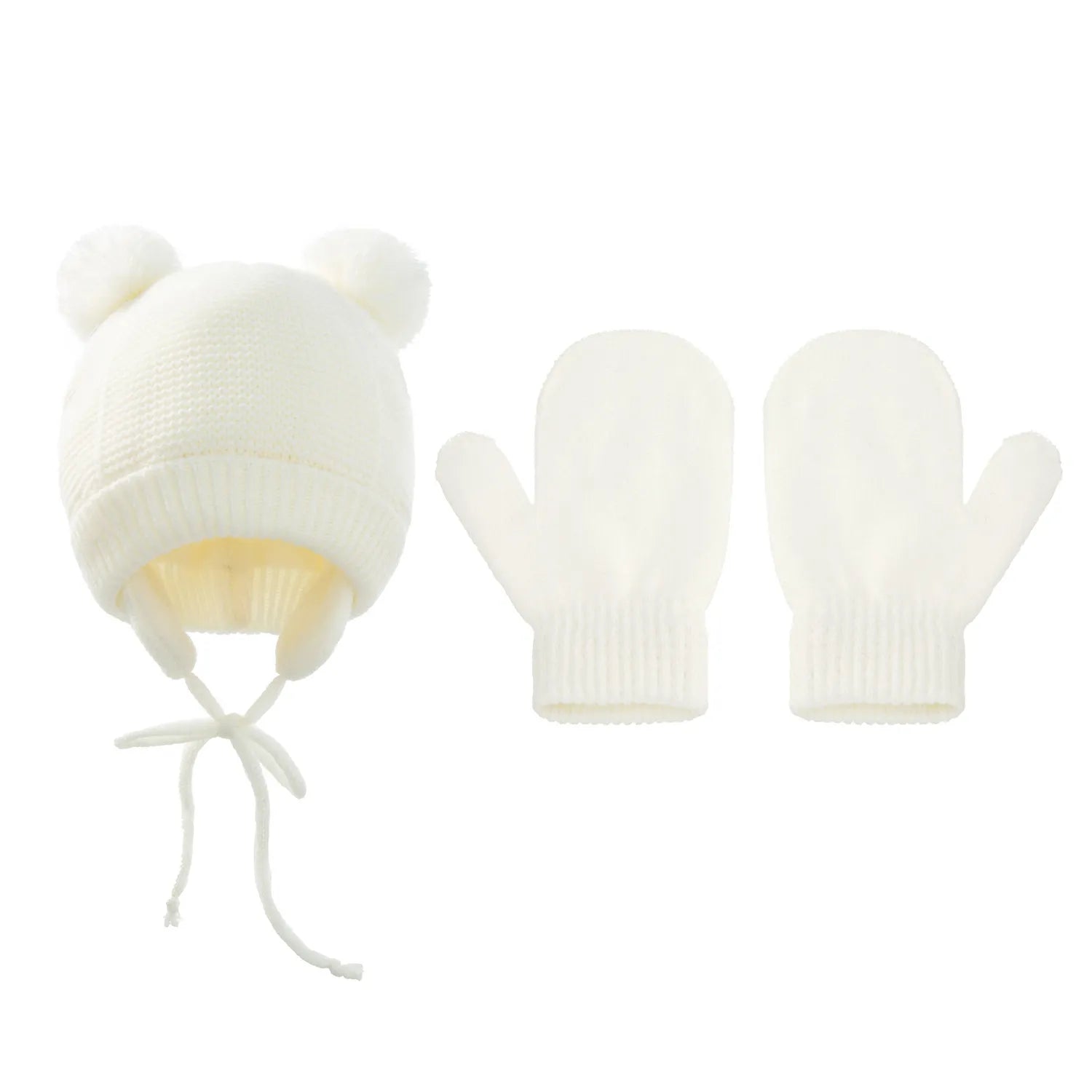 Cute Knitted Pompom Baby Hat & Glove - Winter Essential for Newborns