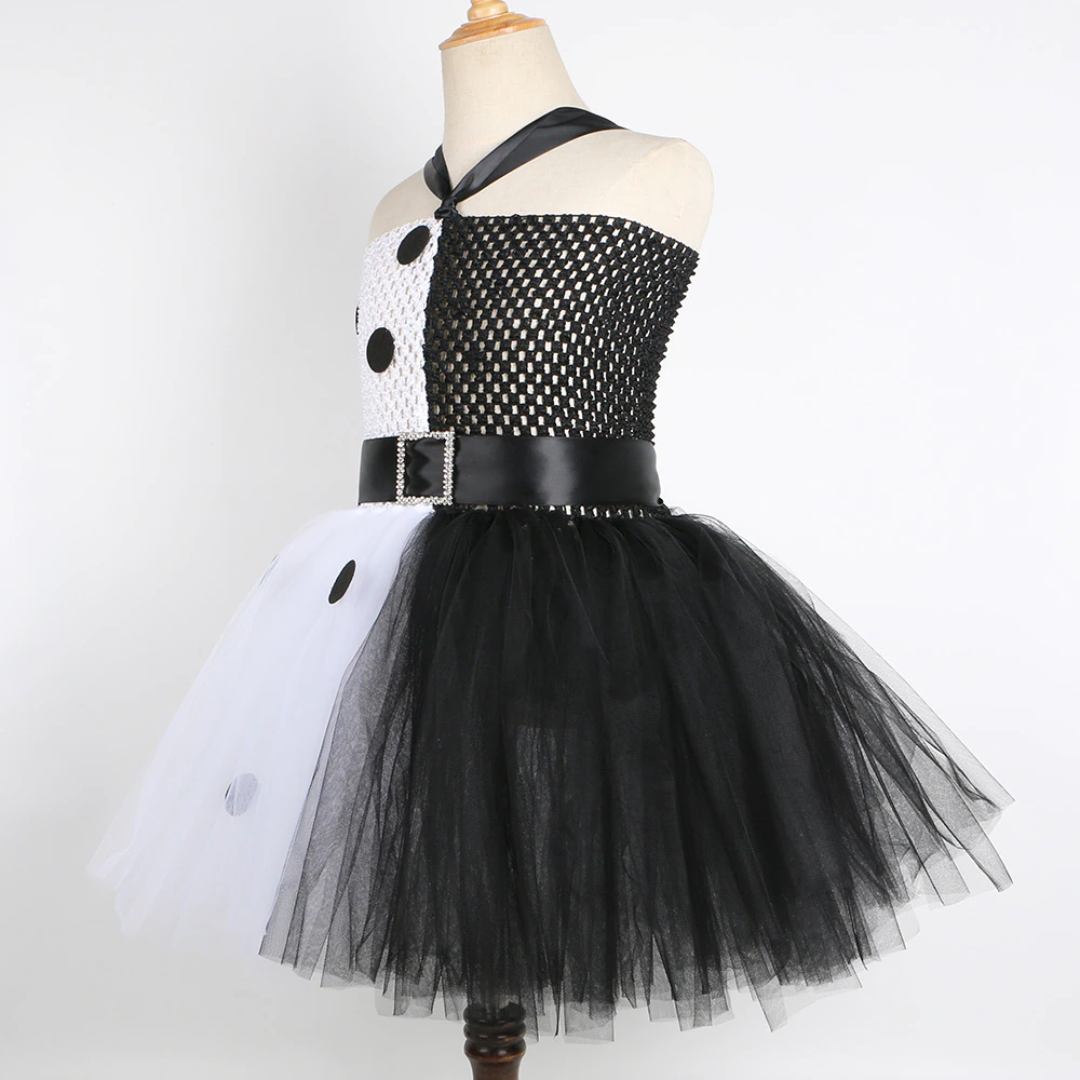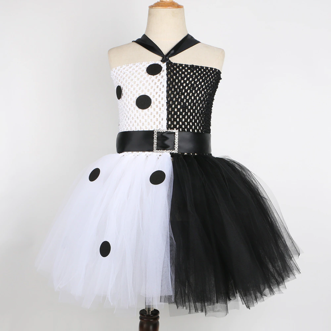 Dieses Dalmatiner Schwarz-Weiß Halloween Tüllkleid Kostümset besteht aus hochwertigem Tüll. Es ist ein wunderschönes Kleid und sehr angenehm zu tragen, perfekt für Cosplay und Halloween-Partys oder andere Anlässe. Sie können auch als Festkleider oder Abschlussballkleider verwendet werden.