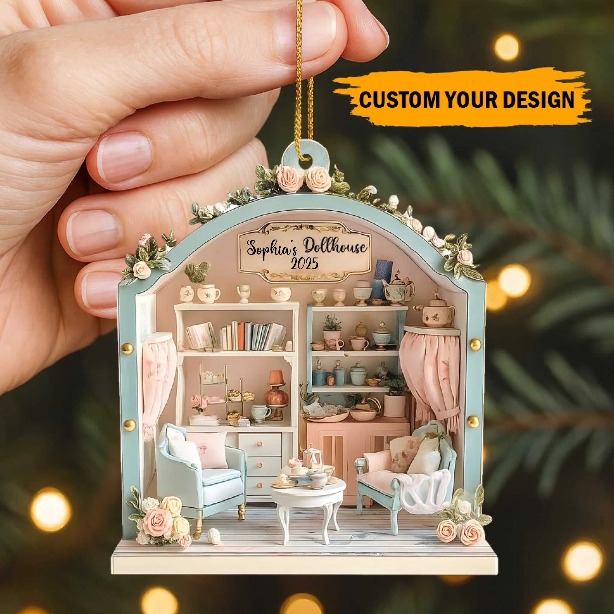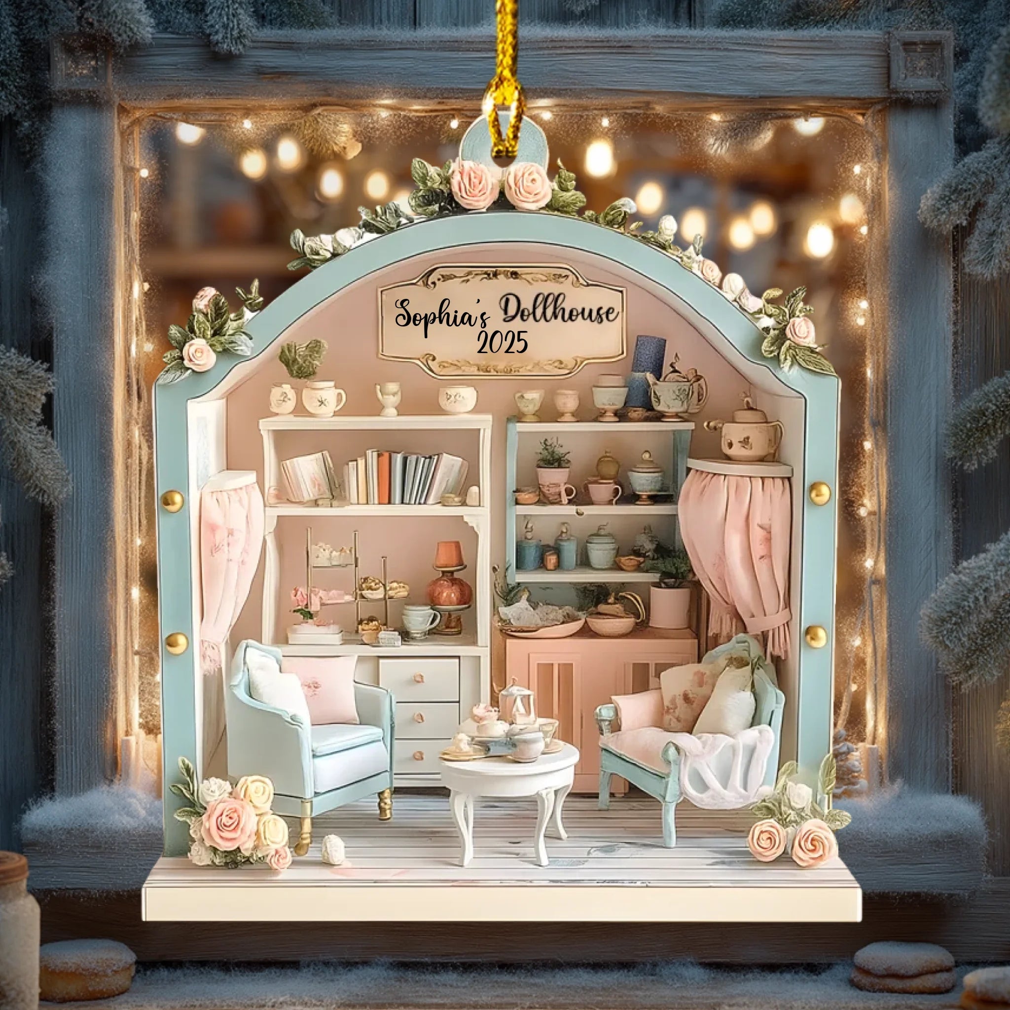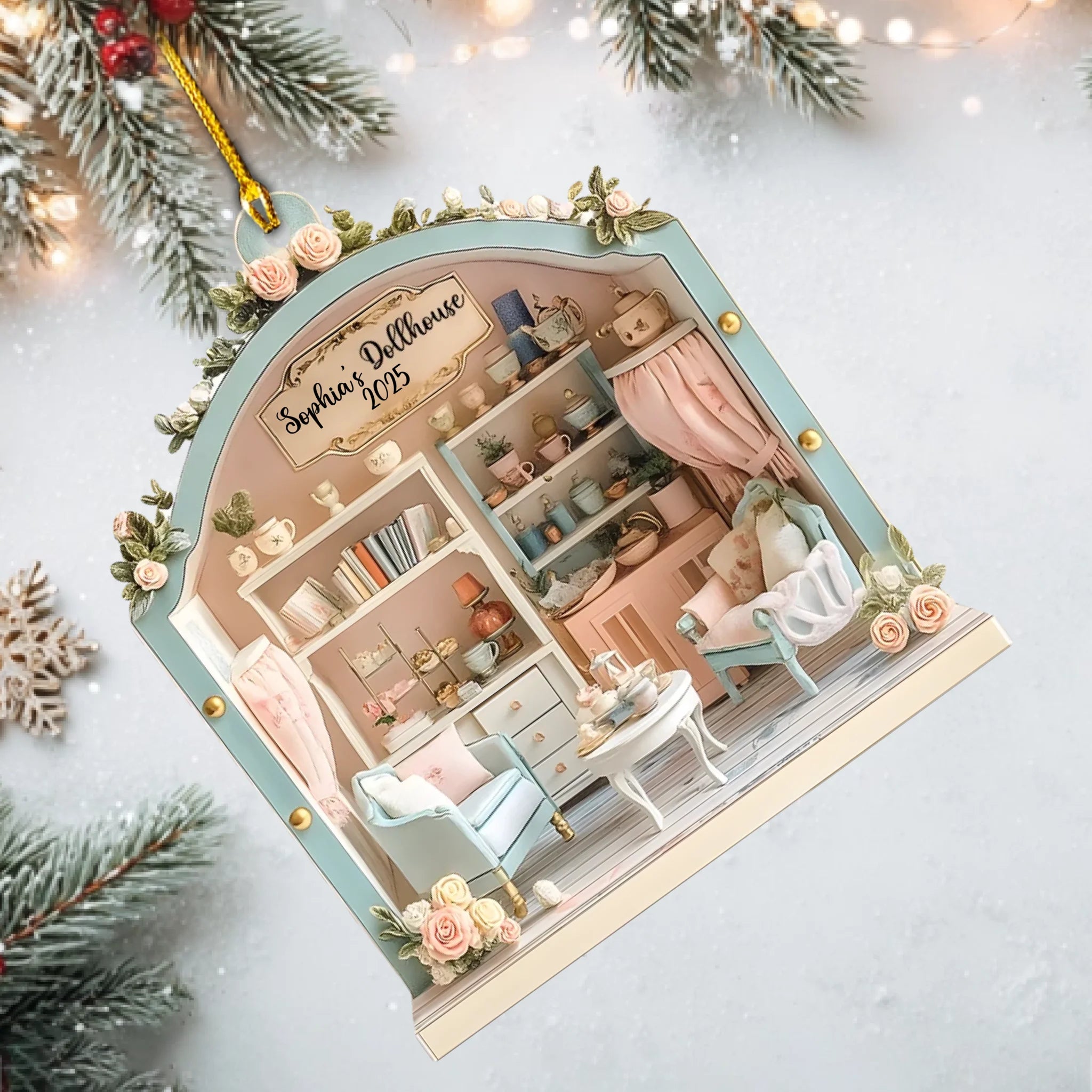 Personalized Dollhouse Wooden Ornament – Custom Name & Year