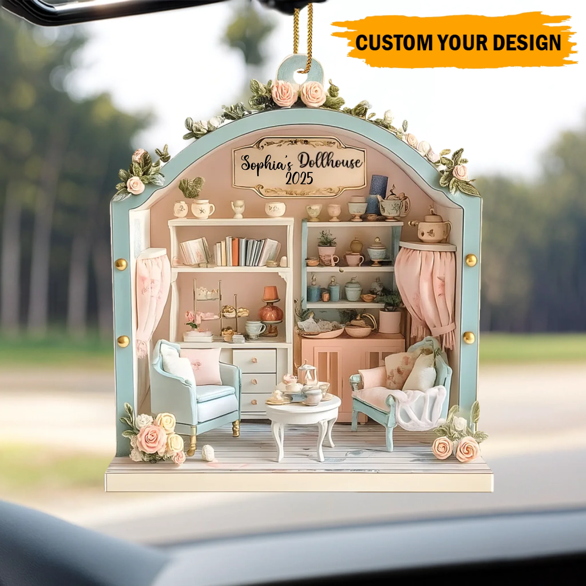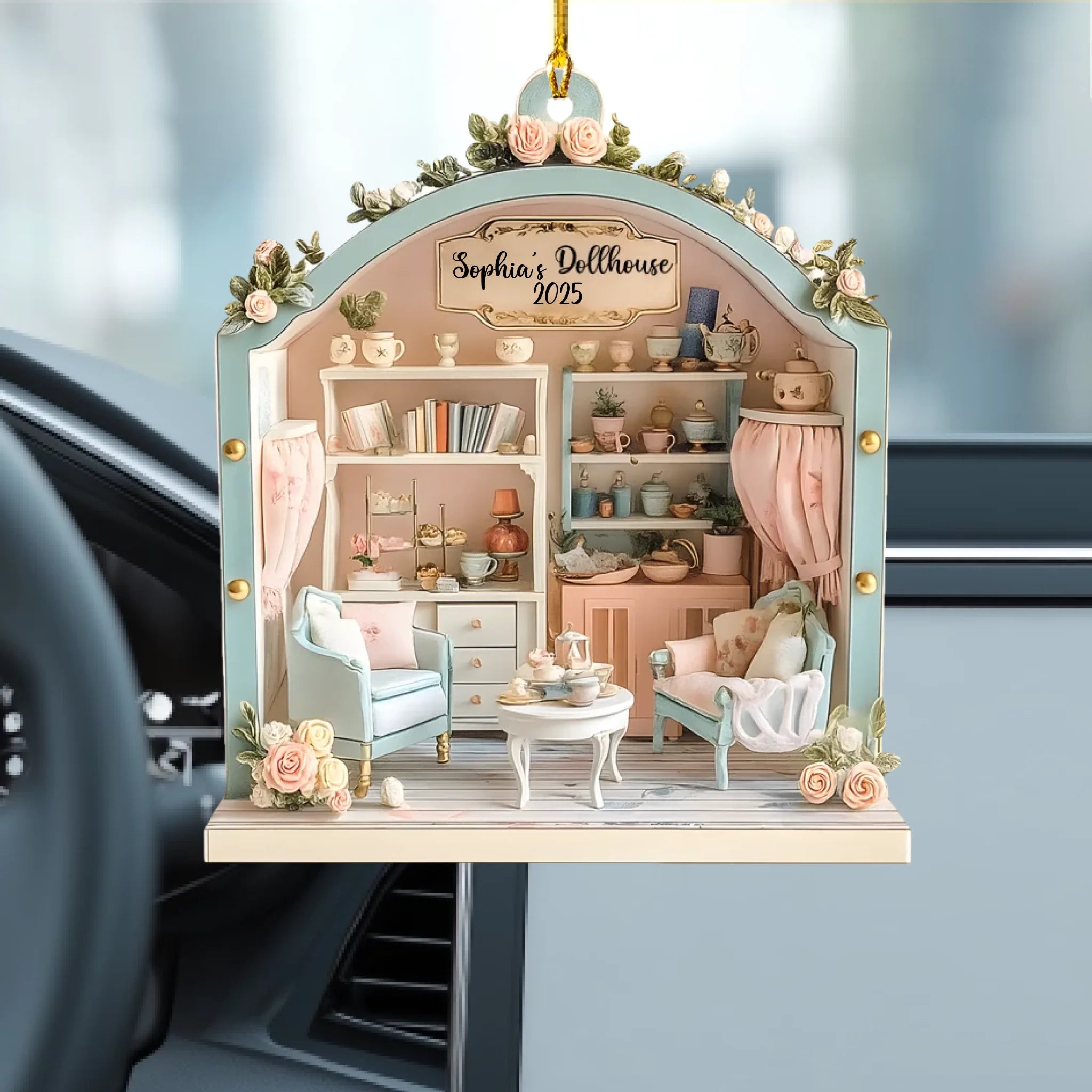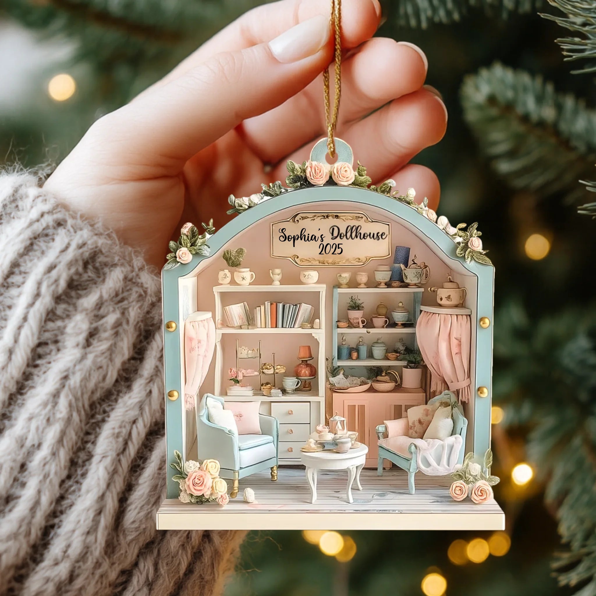 Personalized Dollhouse Wooden Ornament – Custom Name & Year
