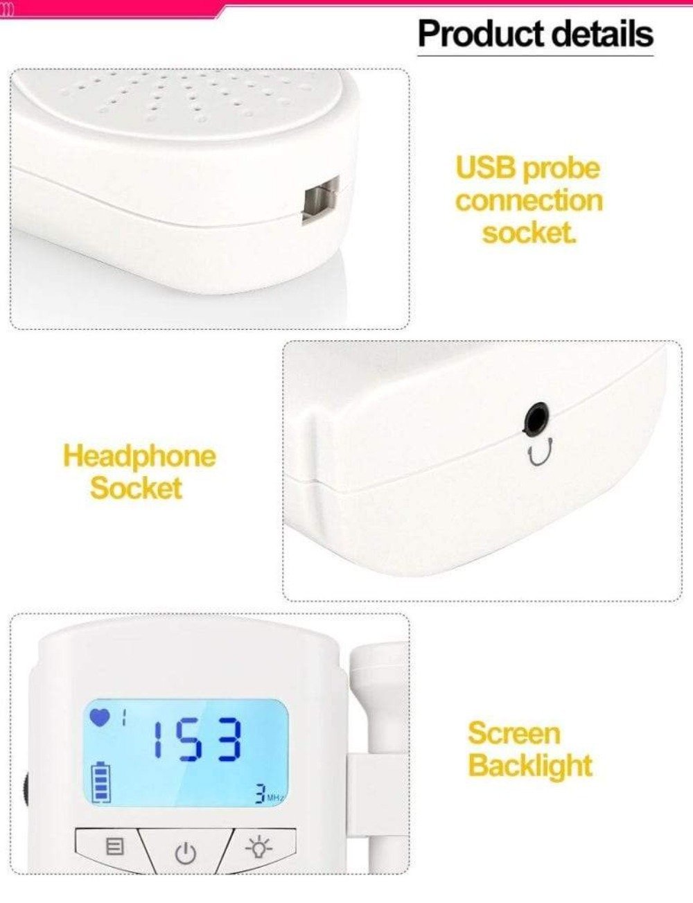- Leicht und tragbar, dieser Fetaldoppler verfügt über einen eingebauten Lautsprecher mit Lautstärkeregelung.