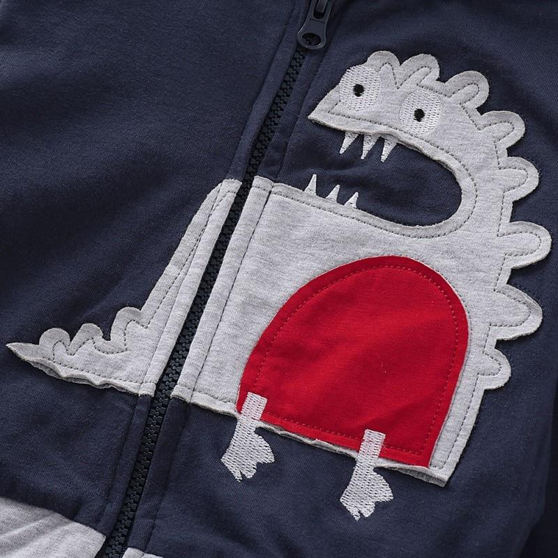 Das Drachen-Kapuzen-Sweatshirt begeistert Kinder, die an ein wenig Magie glauben und Spannung in ihrem Leben brauchen. Das gestickte Drachen-Applikationsdesign fasziniert Kinder und sie würden es lieben, es bei einem lockeren Treffen zu tragen. Der Baumwollstoff ist bequem und frei von Hautirritationen. Der Reißverschluss vorne sorgt für einfaches Anziehen, oder sie können ihn offen lassen und das Sweatshirt über ein T-Shirt tragen, um einen schicken Look zu erzielen.