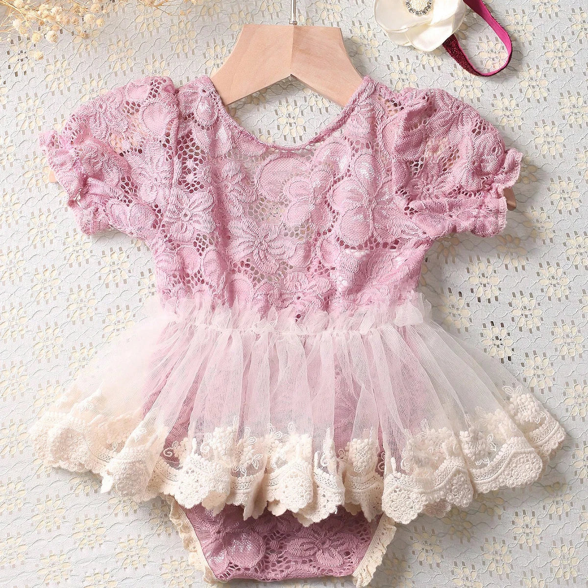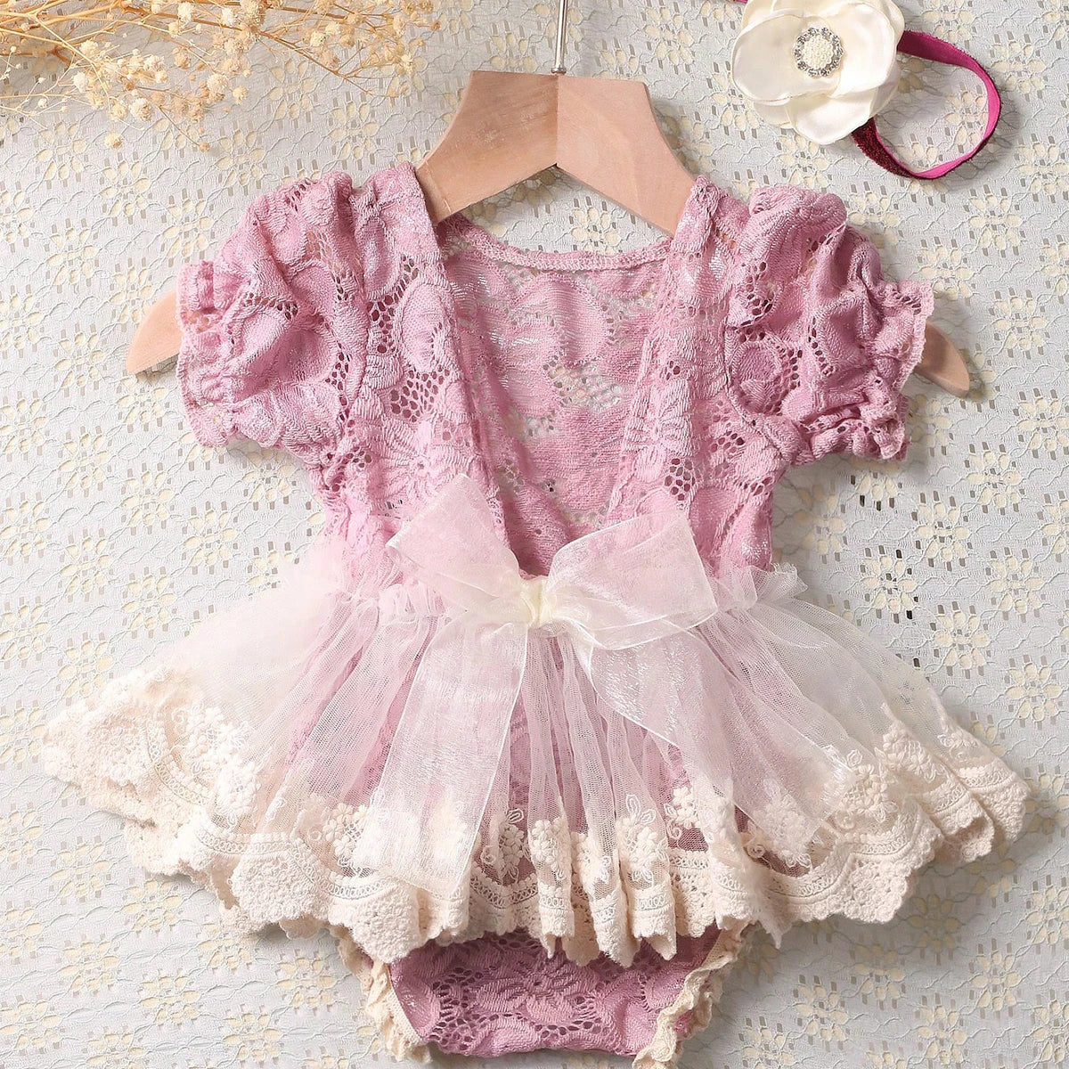 Elegantes Design: Der Spitzen-Strampler in einem wunderschönen Altrosa strahlt Eleganz und Charme aus und kreiert einen zeitlosen Look für das Fotoshooting Ihres Neugeborenen.