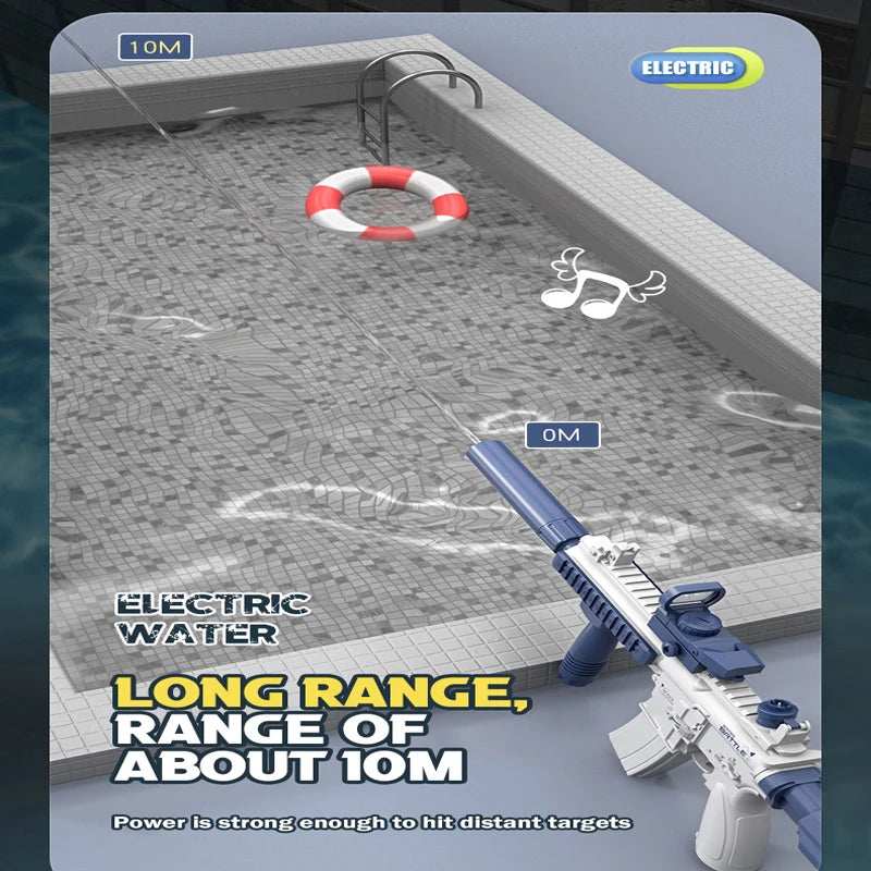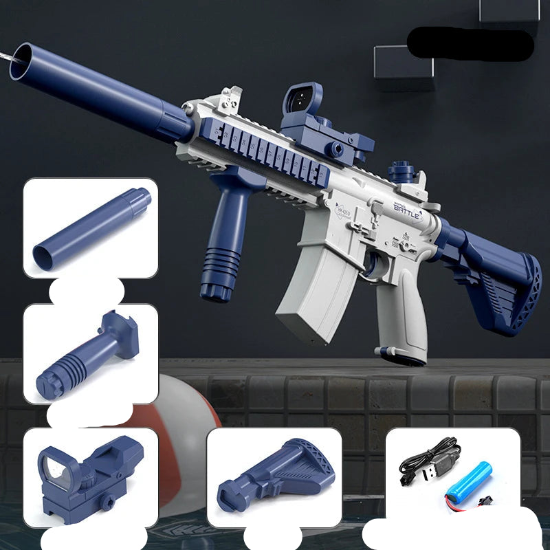 Elektrische Wasserpistole M416 – Batteriebetriebener Wasserblaster mit 10 m Reichweite für Kinder, Sommer-Strandspielzeug für draußen, automatischer Wasserspaß für Jungen und Mädchen (3+)