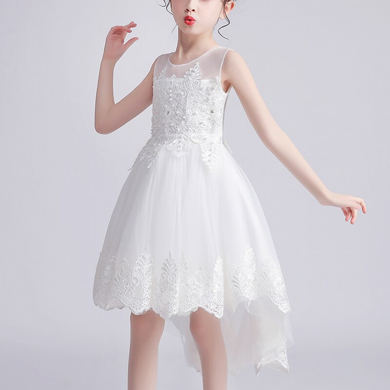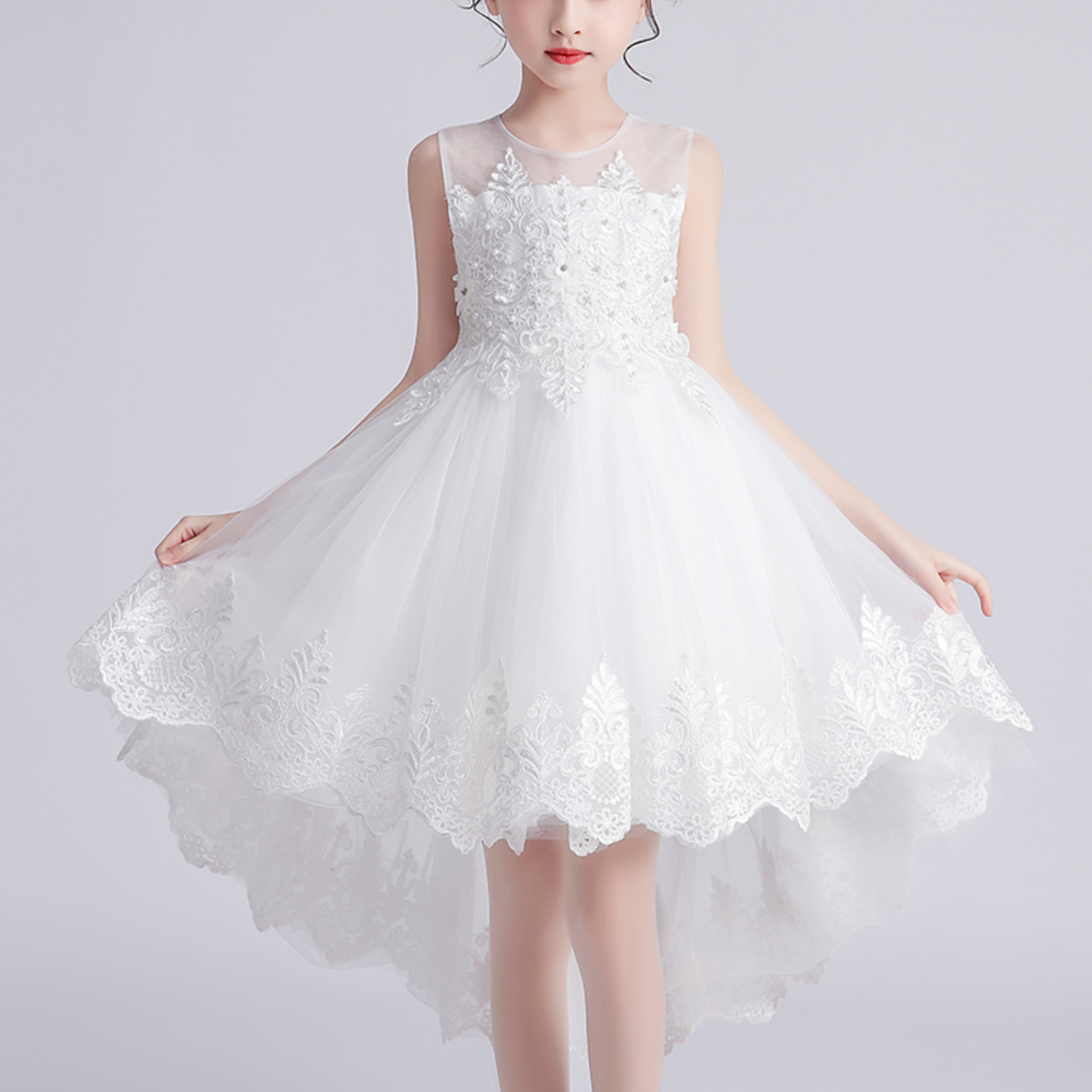 Váy Dự Tiệc Bé Gái Không Tay Thiết Kế Ren Thanh Lịch Đuôi Chim