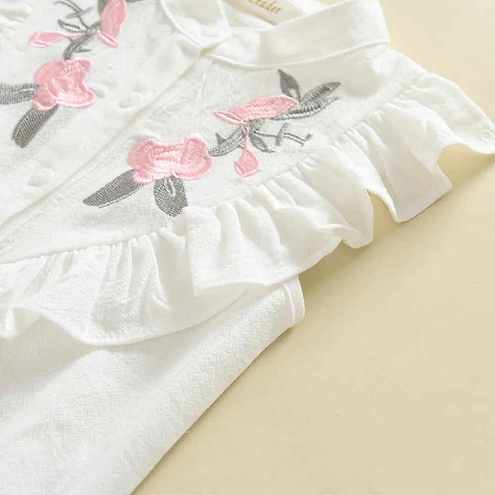 Modische Details: Dieses Set besticht durch exquisite Stickereien, die dem Look Ihres Kindes einen Hauch von Eleganz verleihen. Das ärmellose Design ist perfekt für warme Sommertage und hält Ihr Kleines kühl und stylisch.