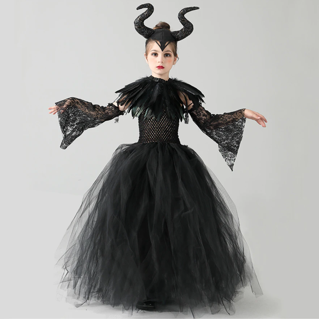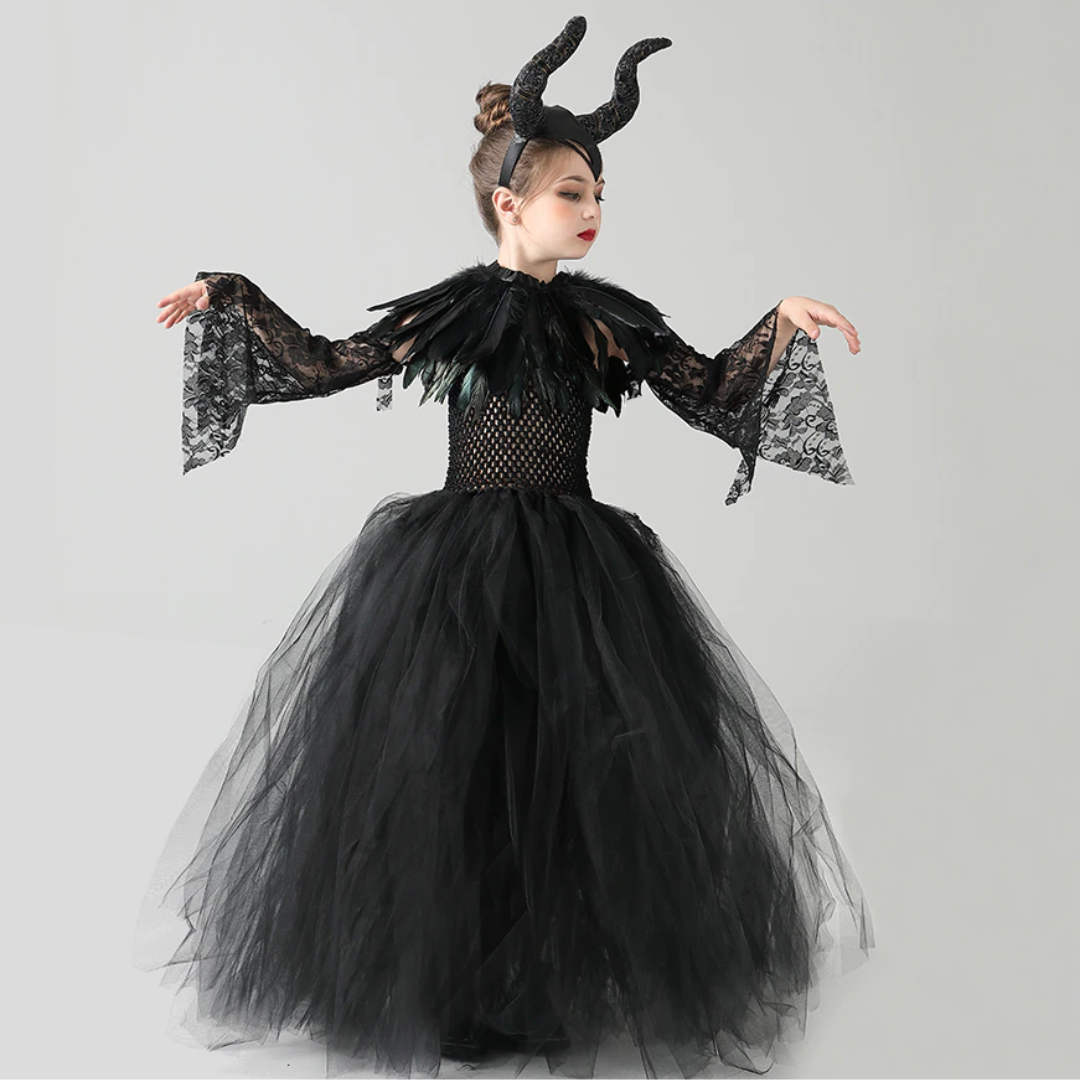 ชุดเดรสแม่มดดำสุดร้าย ชุดกระโปรงผ้าทูลล์สำหรับฮาโลวีน