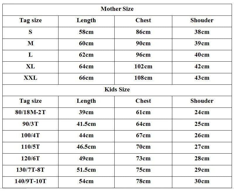 - Individual Pricing: Mom and kid t-shirts are priced separately; each price is for one t-shirt.