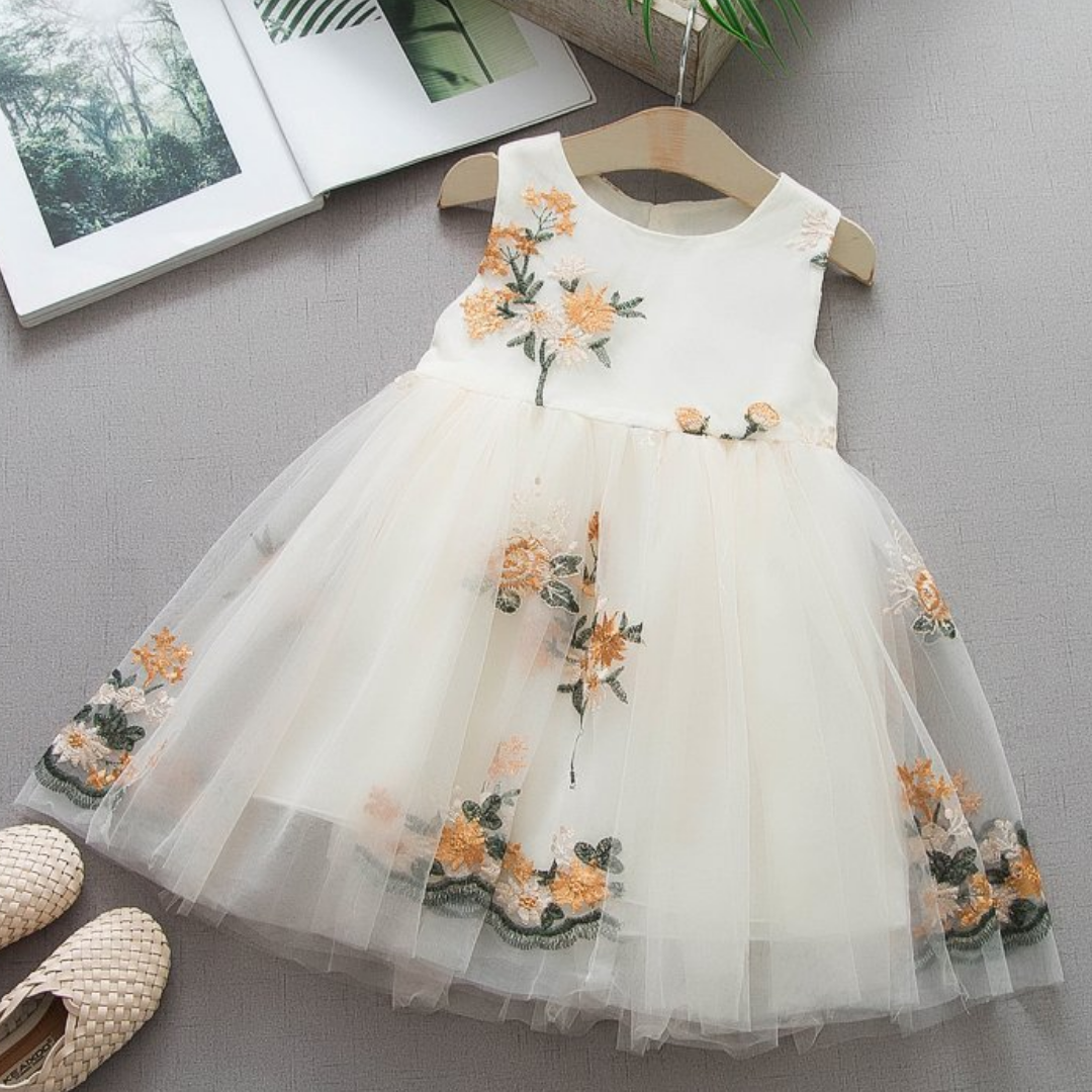Dieses Ärmellose Prinzessinnen-Freizeitkleid mit floraler Stickerei kann in allen Jahreszeiten getragen werden. Das wunderschöne Blumenstickerei-Design verleiht einen eleganten Fashion-Look. Das Material ist weich und sehr bequem für Ihr Baby.