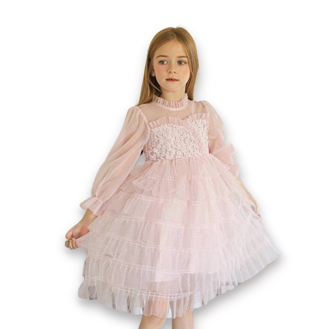 Dieses Prinzessinnenkleid mit floraler Stickerei, Spitzenrüschen und Puffärmeln ist für Mädchen. Das ideale Outfit für Ihre kleine Tochter bei Geburtstagsfeiern, Familientreffen und anderen besonderen Anlässen. Dieses Kleid ist ein Must-Have und garantiert, dass sie wie eine kleine Prinzessin aussieht.