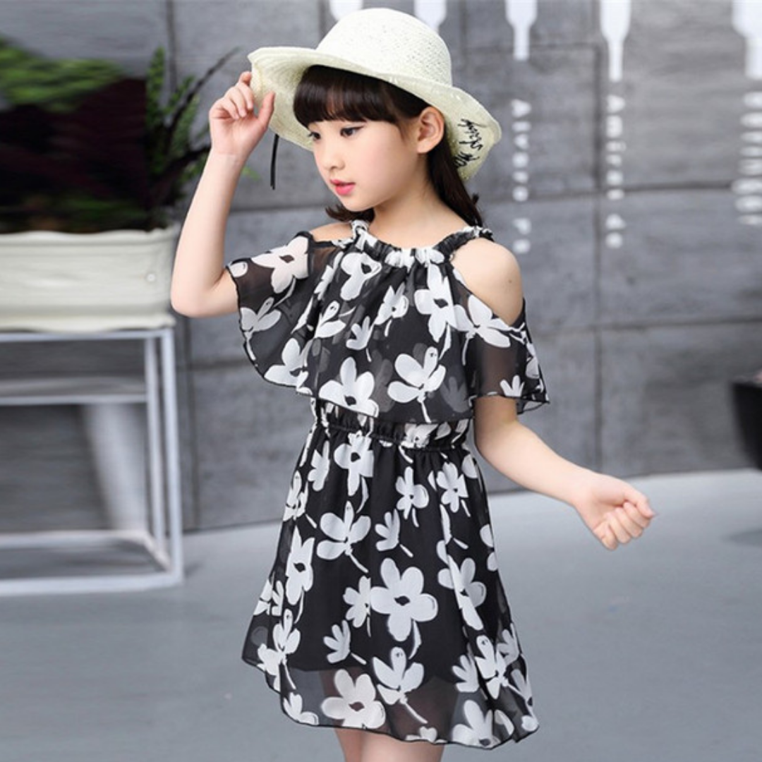 Dieses Floral Graffiti Print Cold Shoulder Sommerkleid für Mädchen ist ein niedliches Kleid für den Sommer. Ihr Mädchen wird das schönste Mädchen am Strand sein, wenn sie dieses Kleid trägt, es ist sehr bequem und den ganzen Tag angenehm zu tragen.